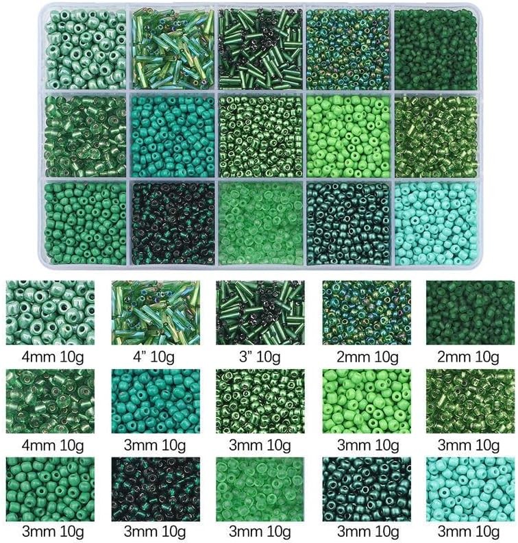 Mix 15 Color Glass Seed Beads Tube Bugle 15 colors, Green