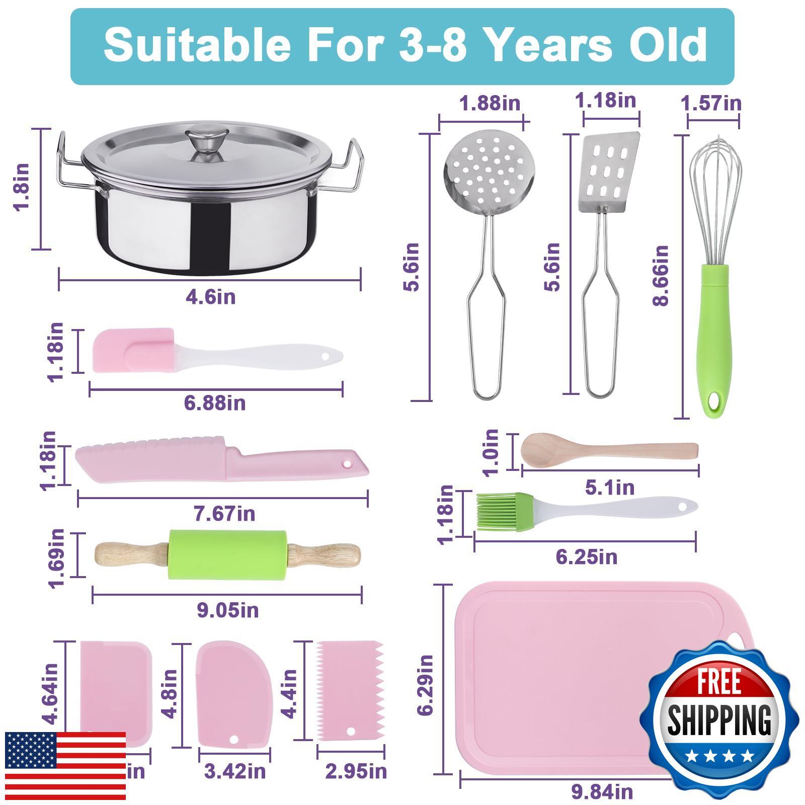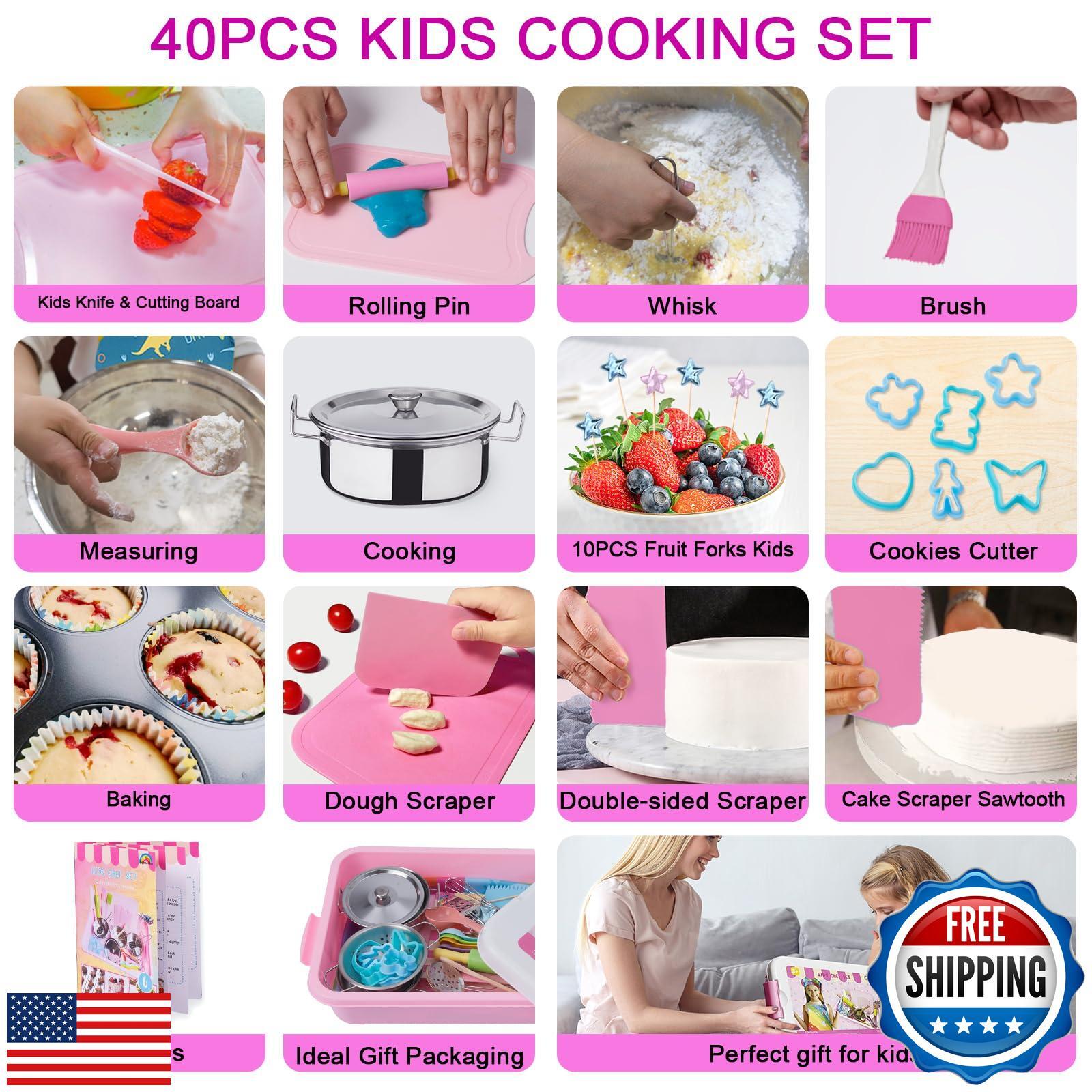 42 Pieces Kids Real Cooking Set,Kids Knife Set, Kids Baking Set,Cookware,Kids