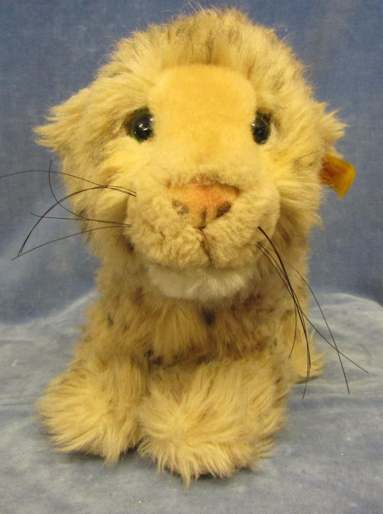 CUTE Steiff Young LION CUB Plush Mohair Glass Green Eyes Button Tag 16 in.