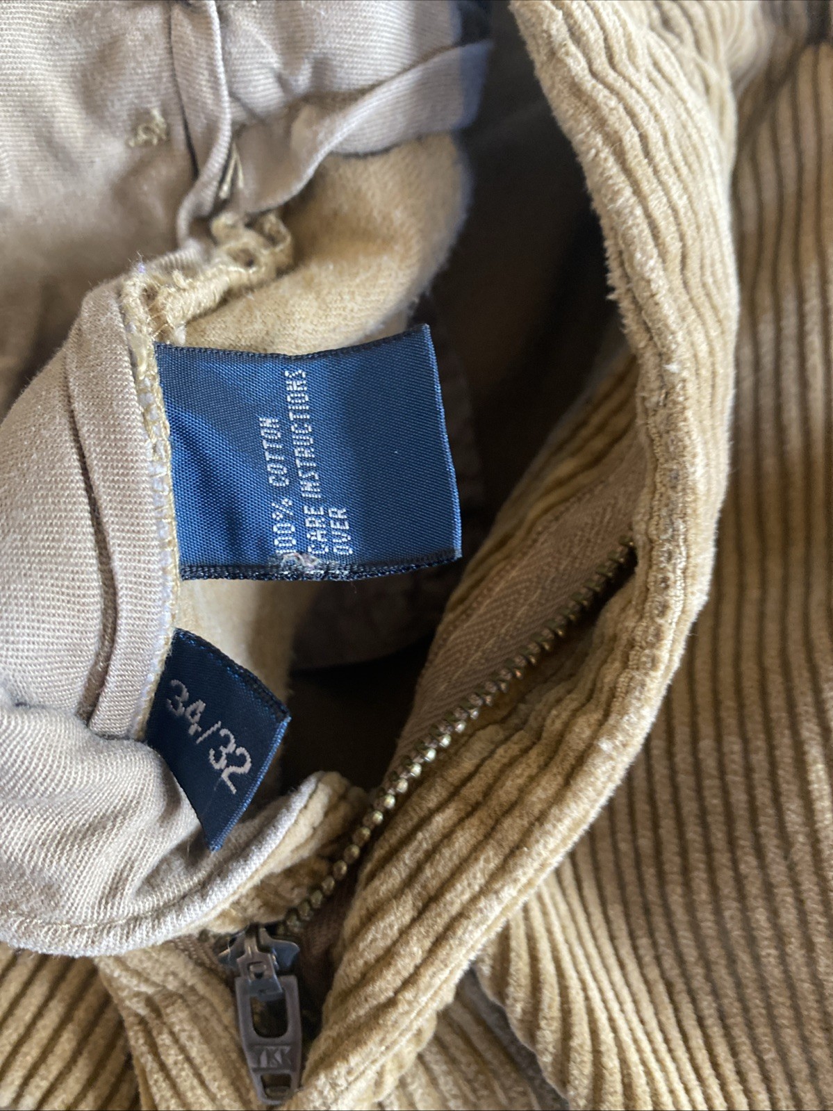 Vintage Polo Ralph Lauren Pants Mens 34x32 Beige Corduroy Casual Khaki Trouser