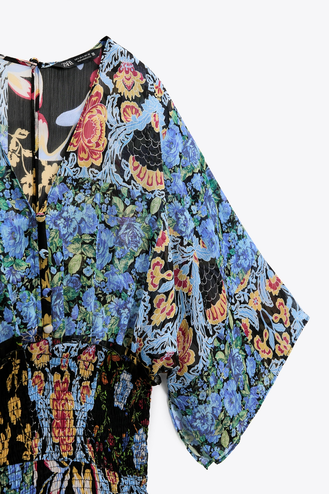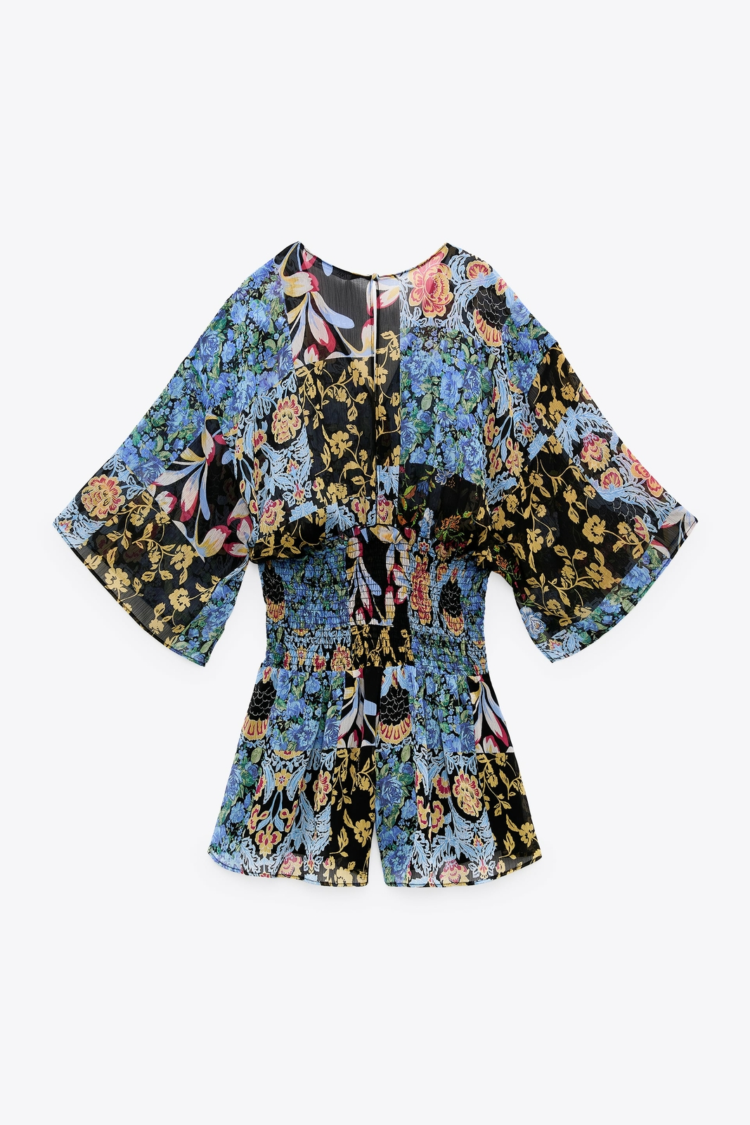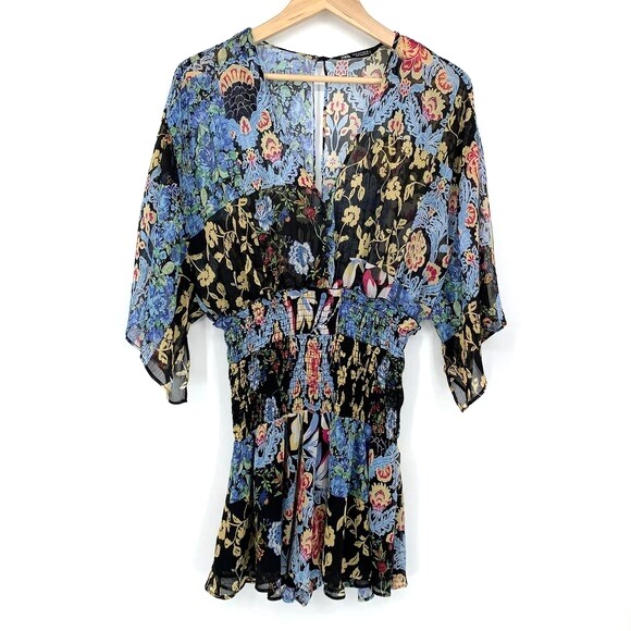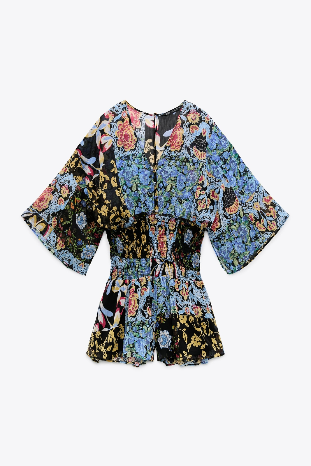 NWT ZARA Multicolor Patchwork Print Flowy Floral Romper Size: L