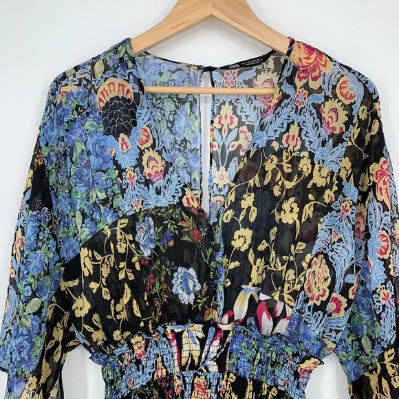 как выглядит NWT ZARA Multicolor Patchwork Print Flowy Floral Romper Size: L фото