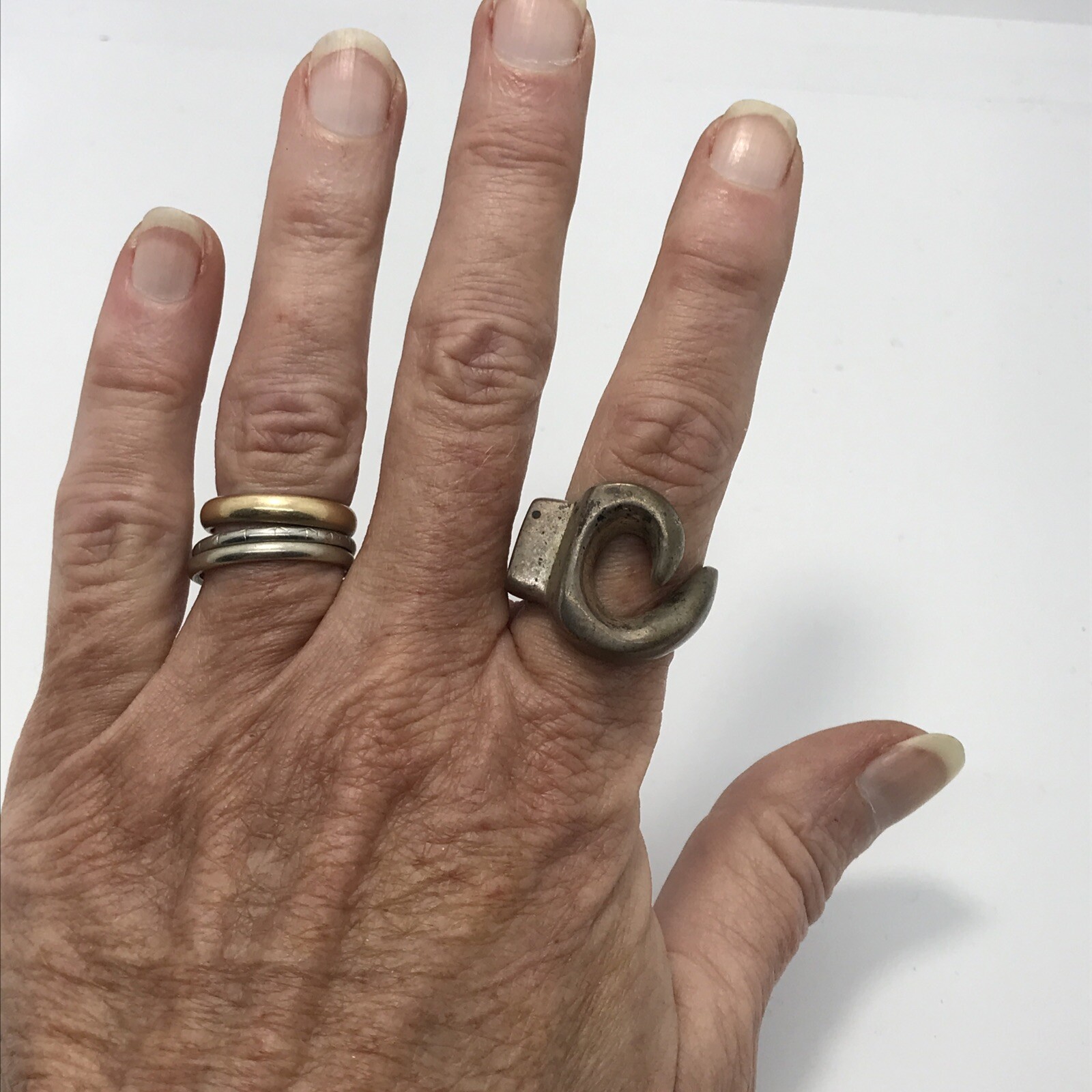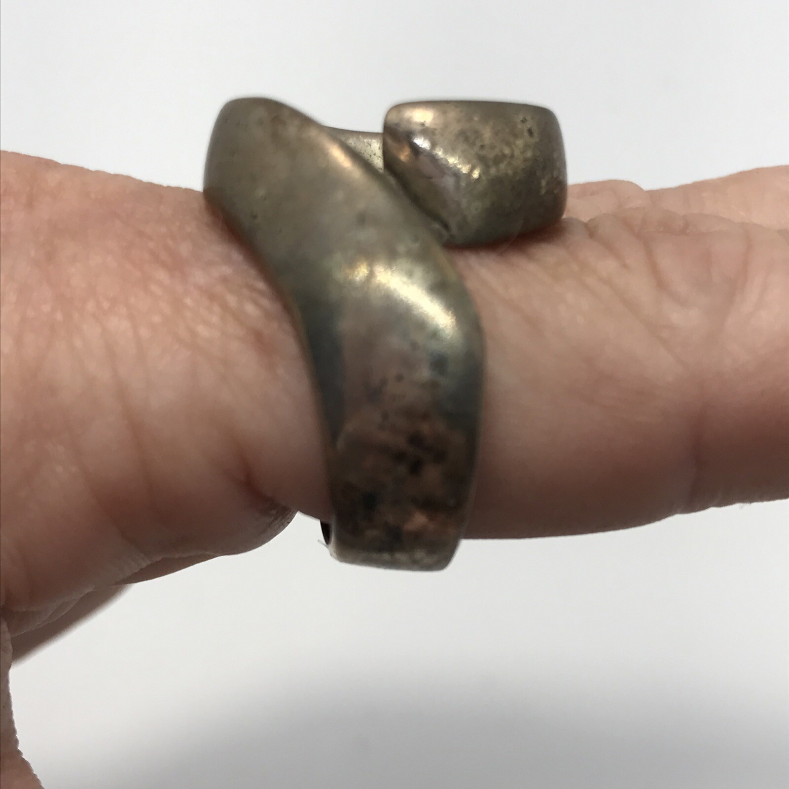 как выглядит Vintage Mexico 925 Sterling SIlver Heavy Abstract Moderen Look Ring sz 9 фото