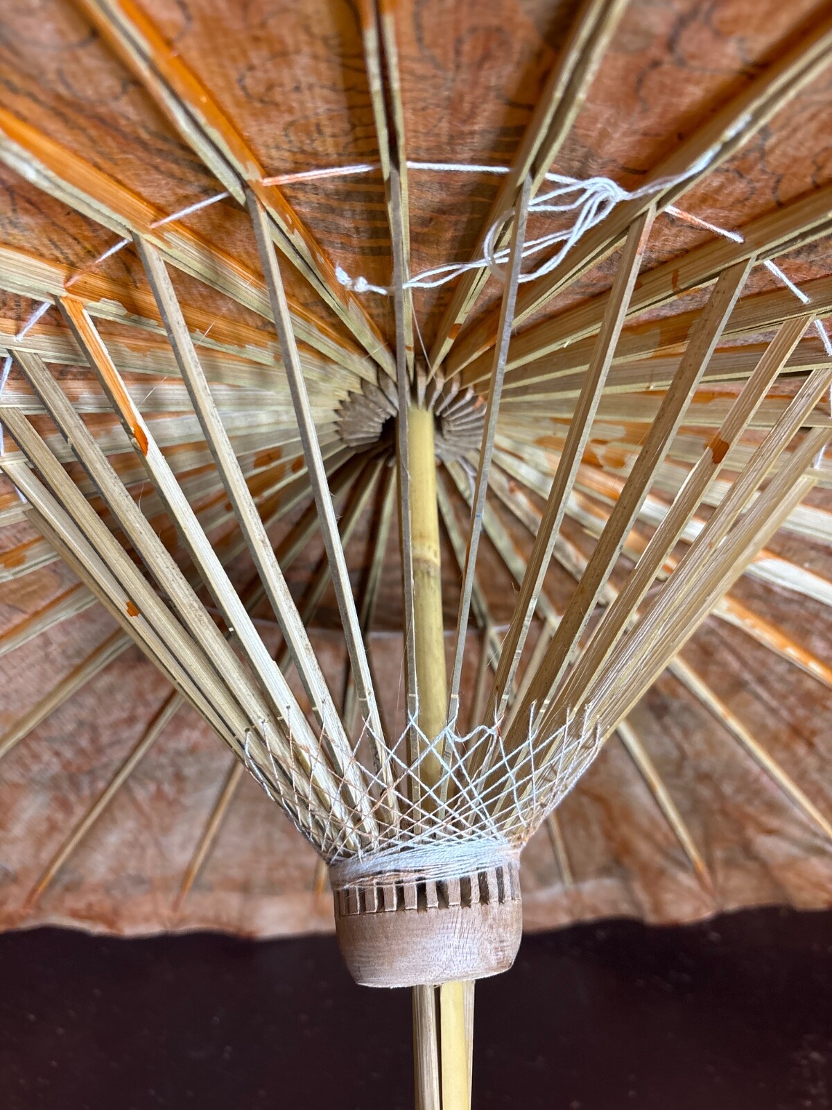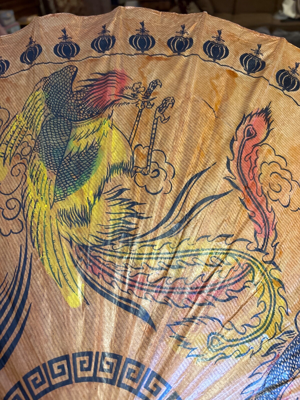 Vintage Oriental Japanese Chinese rice paper bamboo umbrella dragons Read