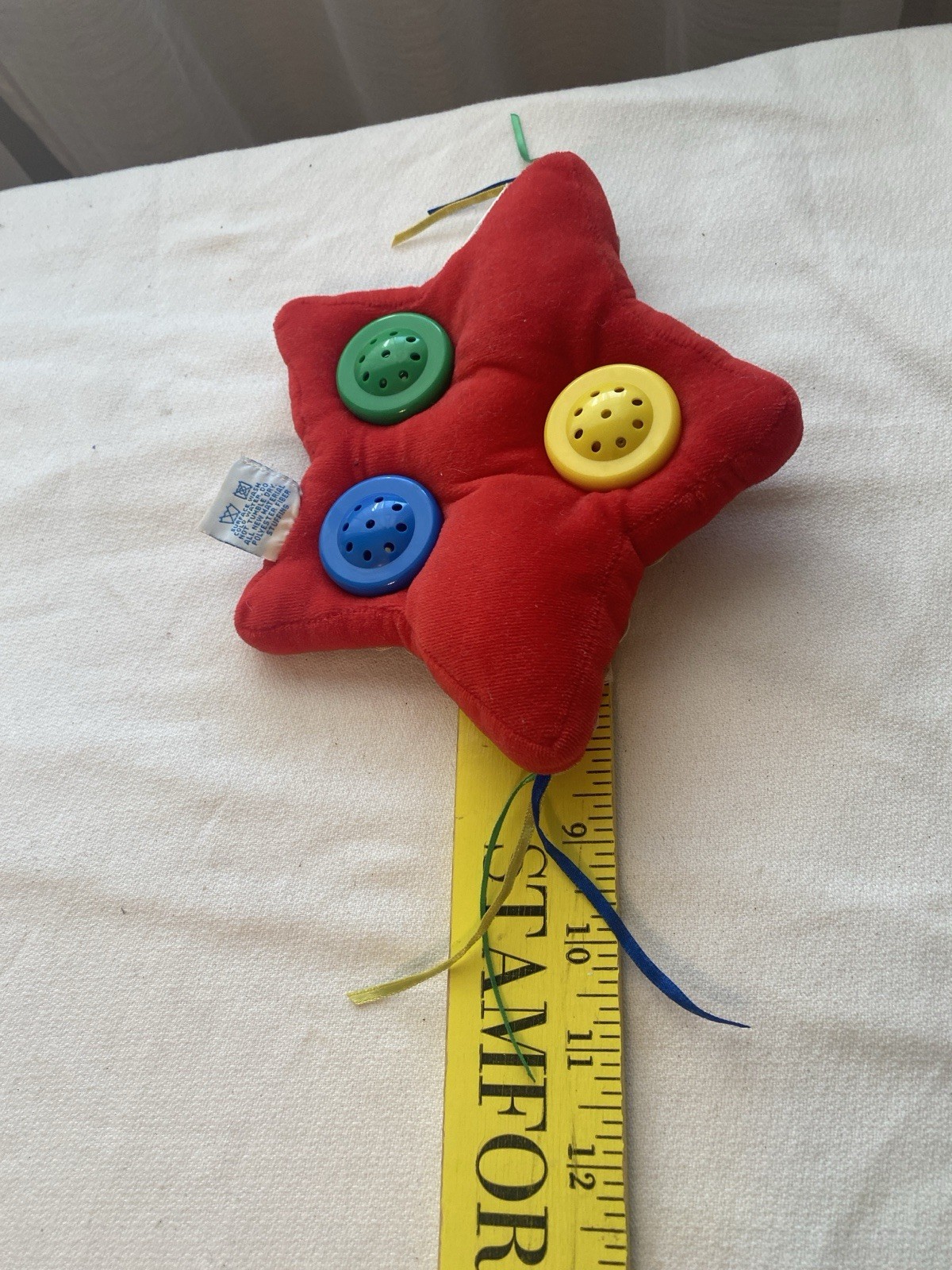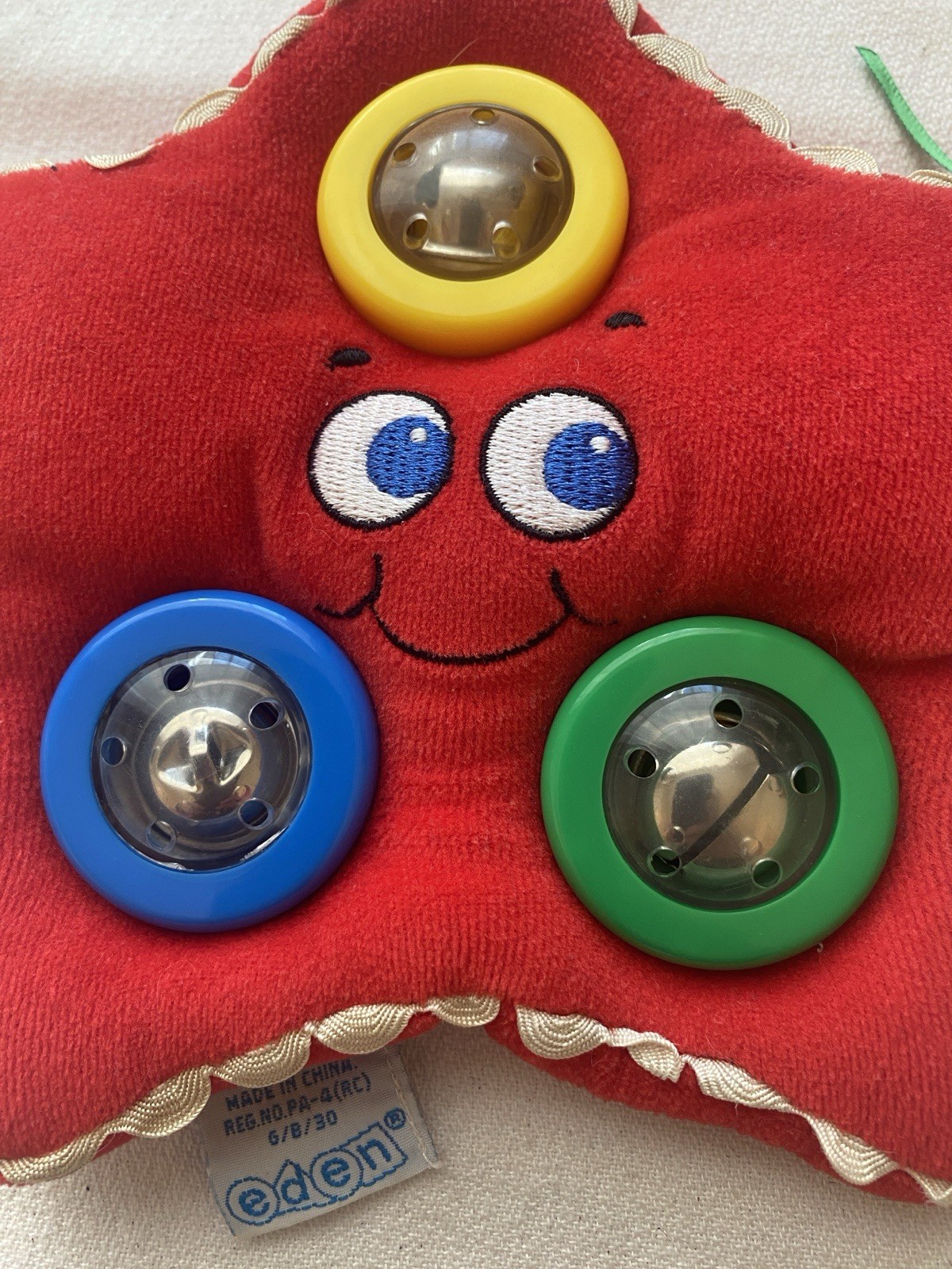 как выглядит VTG Eden Plush Red Star Baby Children Rattle Toy Primary Colors Red Blue Green фото
