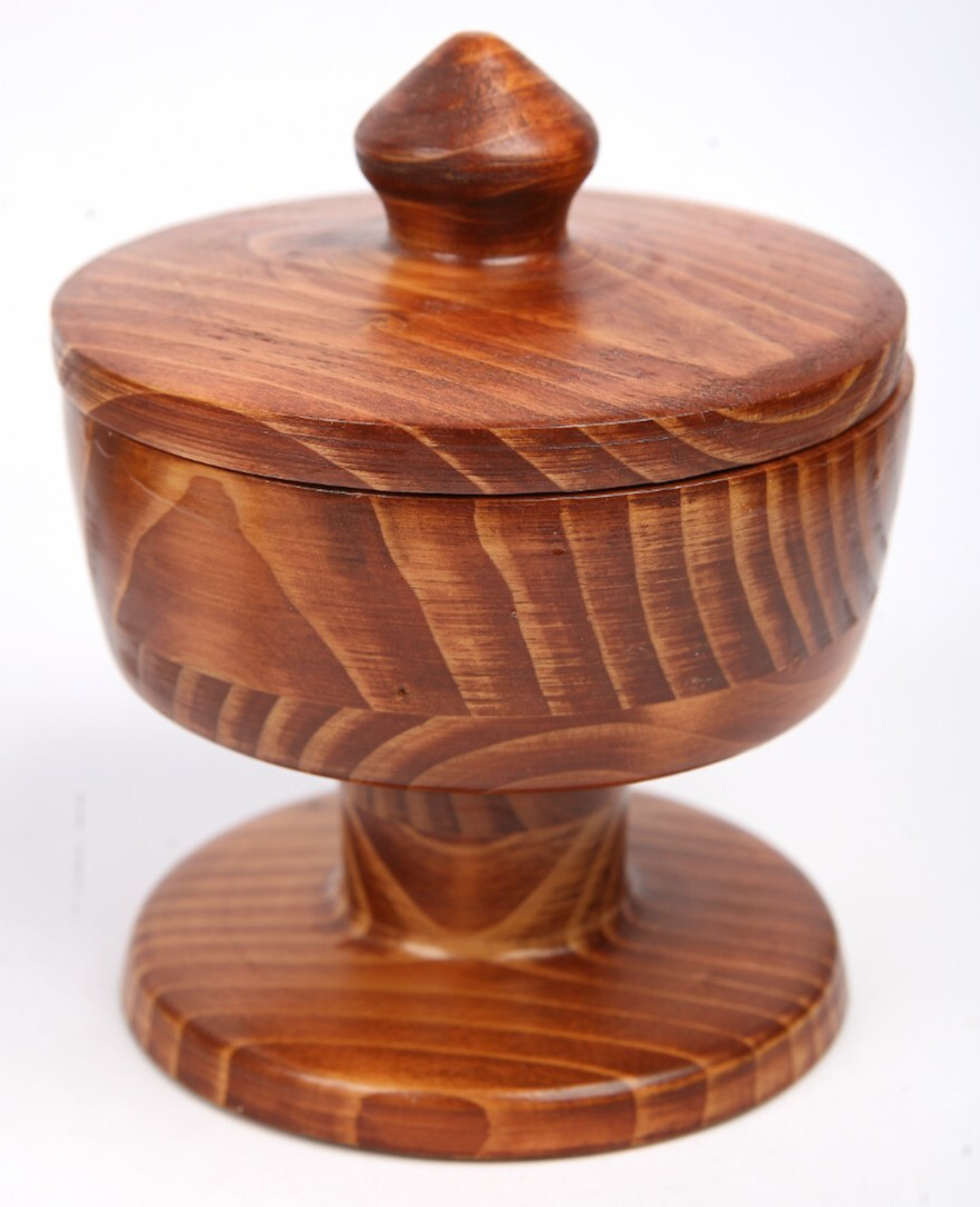 как выглядит Vintage Turned Wood Pedestal Covered Bowl - with Lid - 6" фото