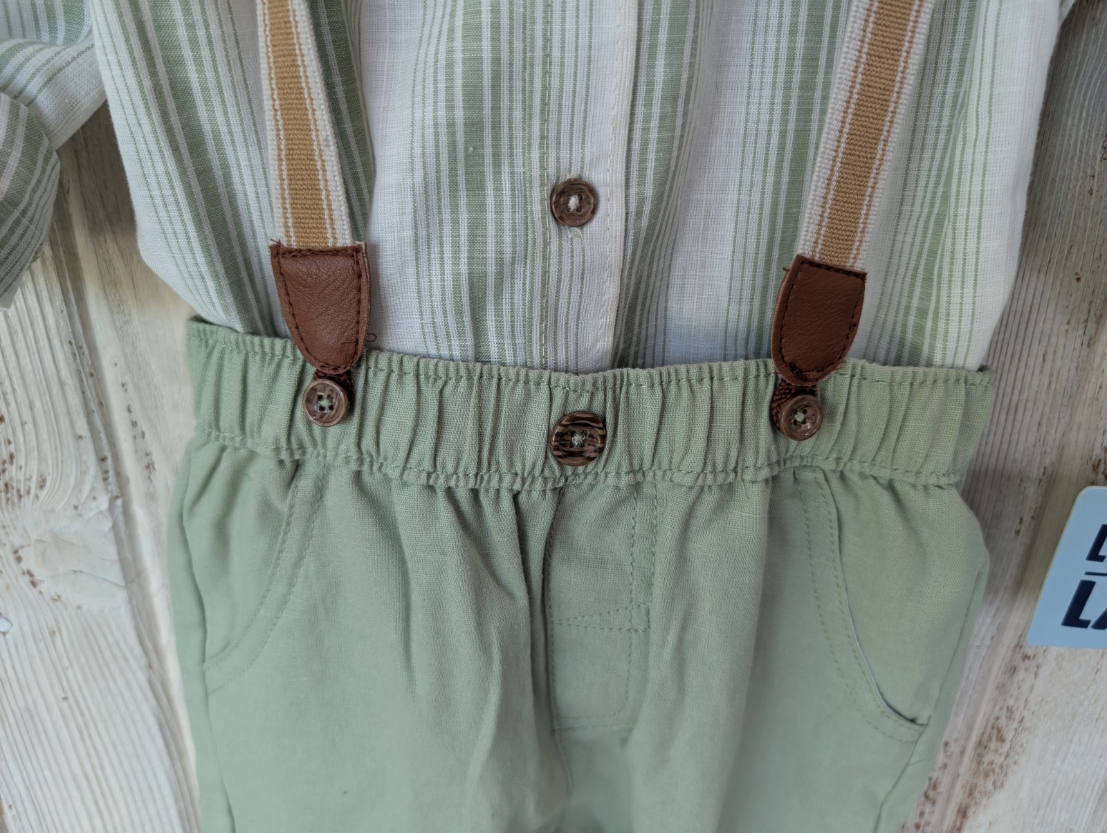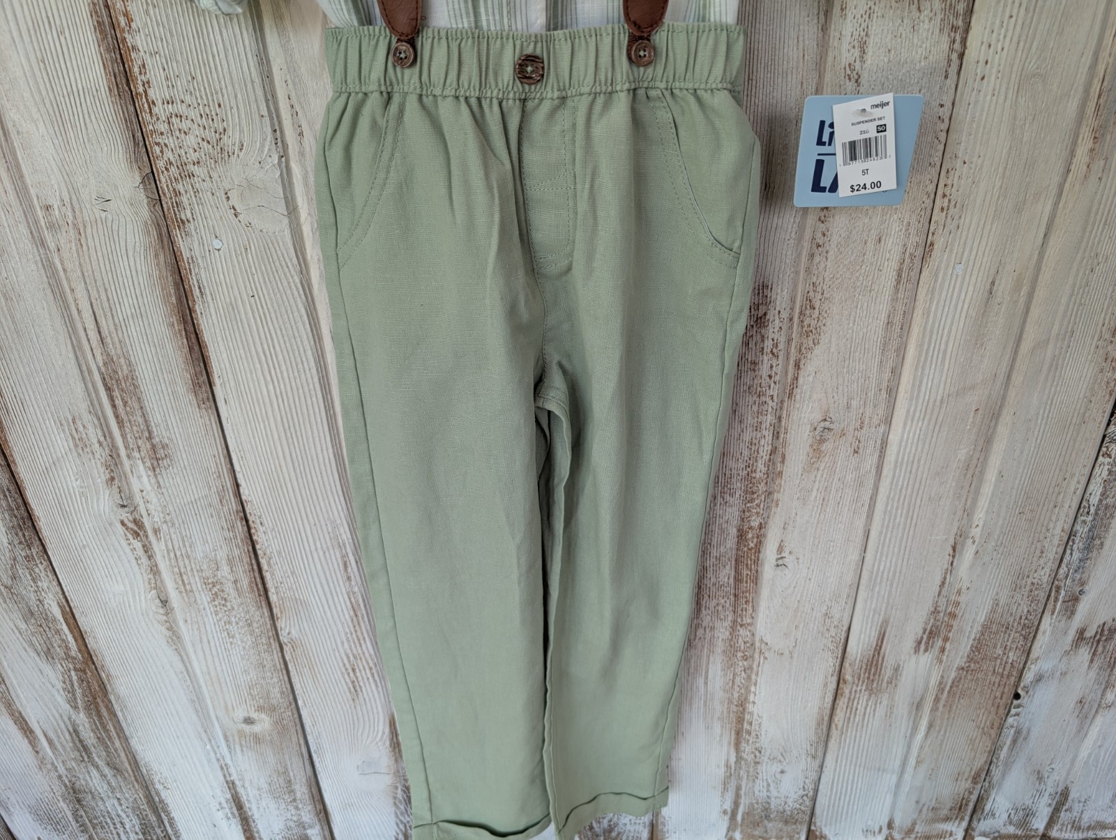 как выглядит New Little Lad 4 pc Shirt Pants Bowtie Suspenders Set Boys Size 5t GREEN фото