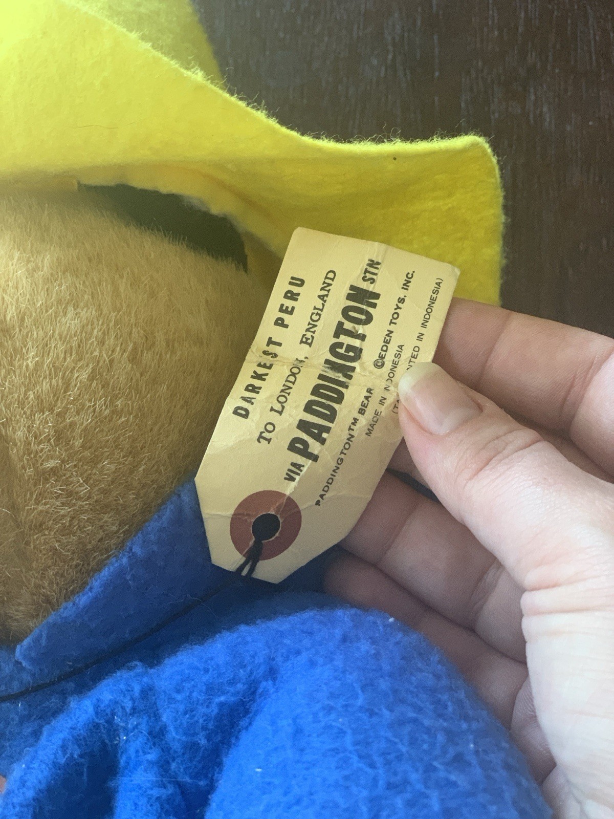 Vintage Eden Paddington Bear Plush with Tag Blue Coat Yellow Hat w/Tags