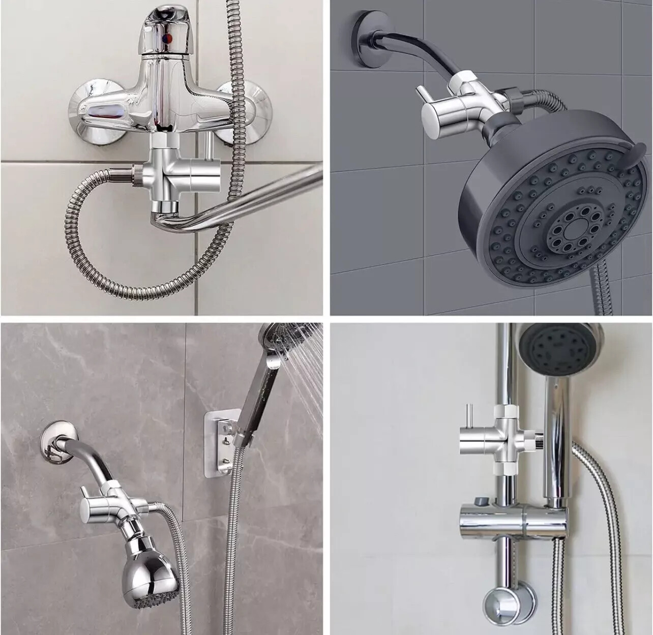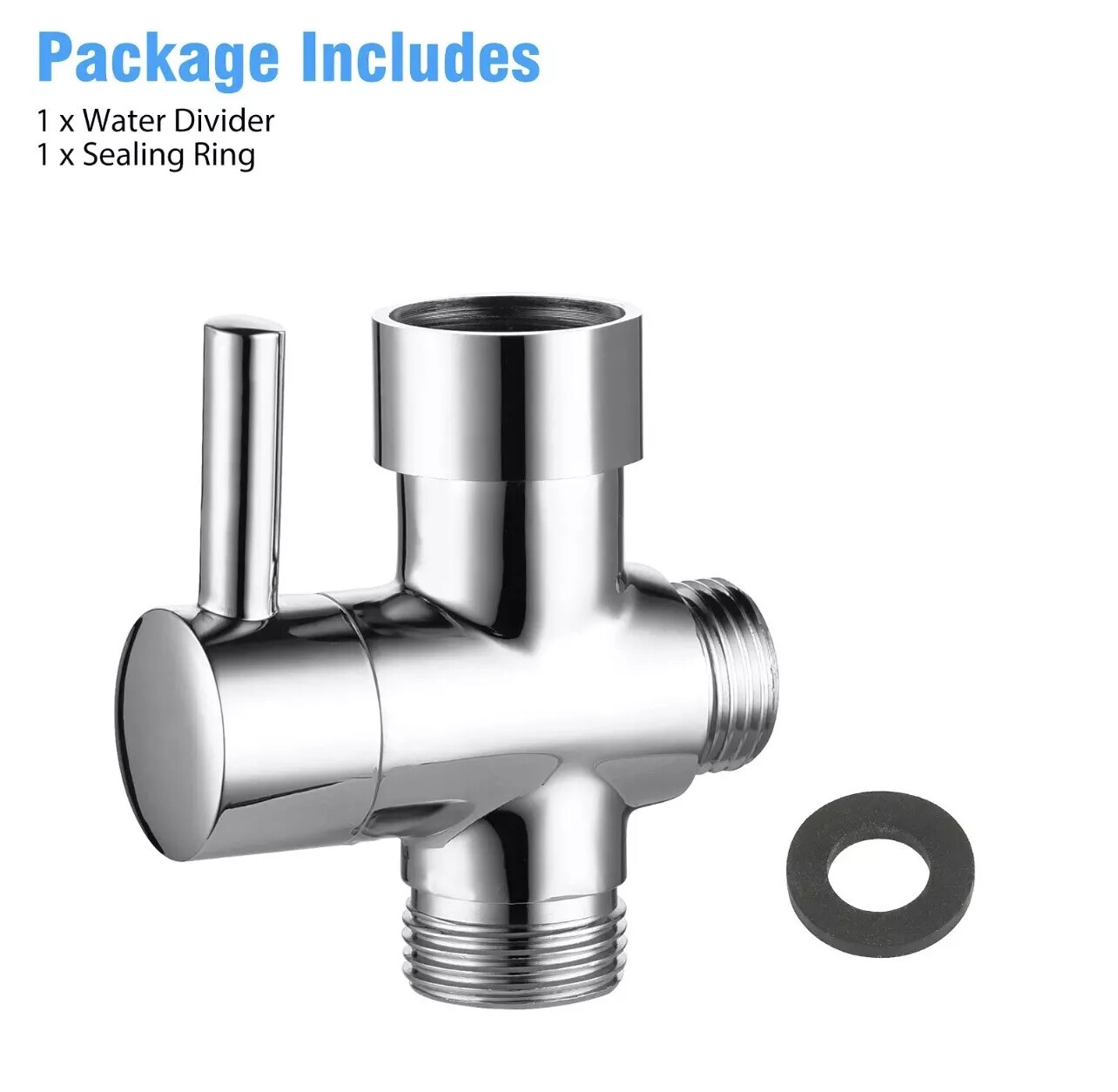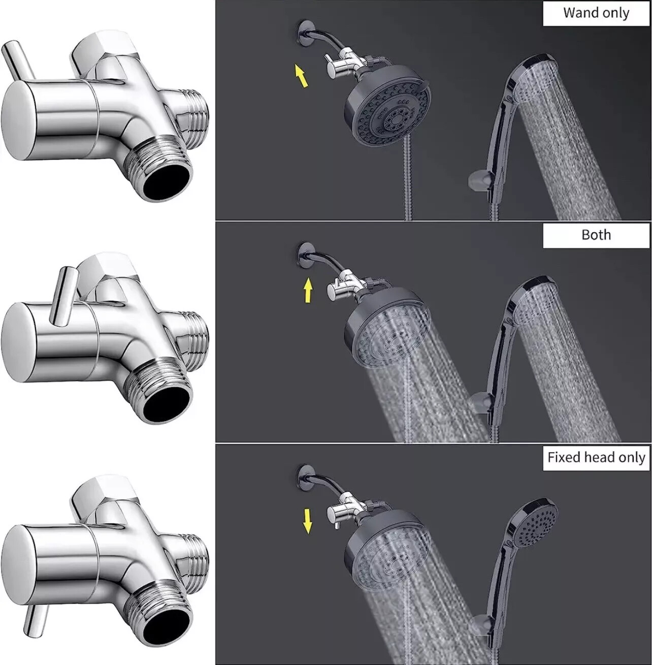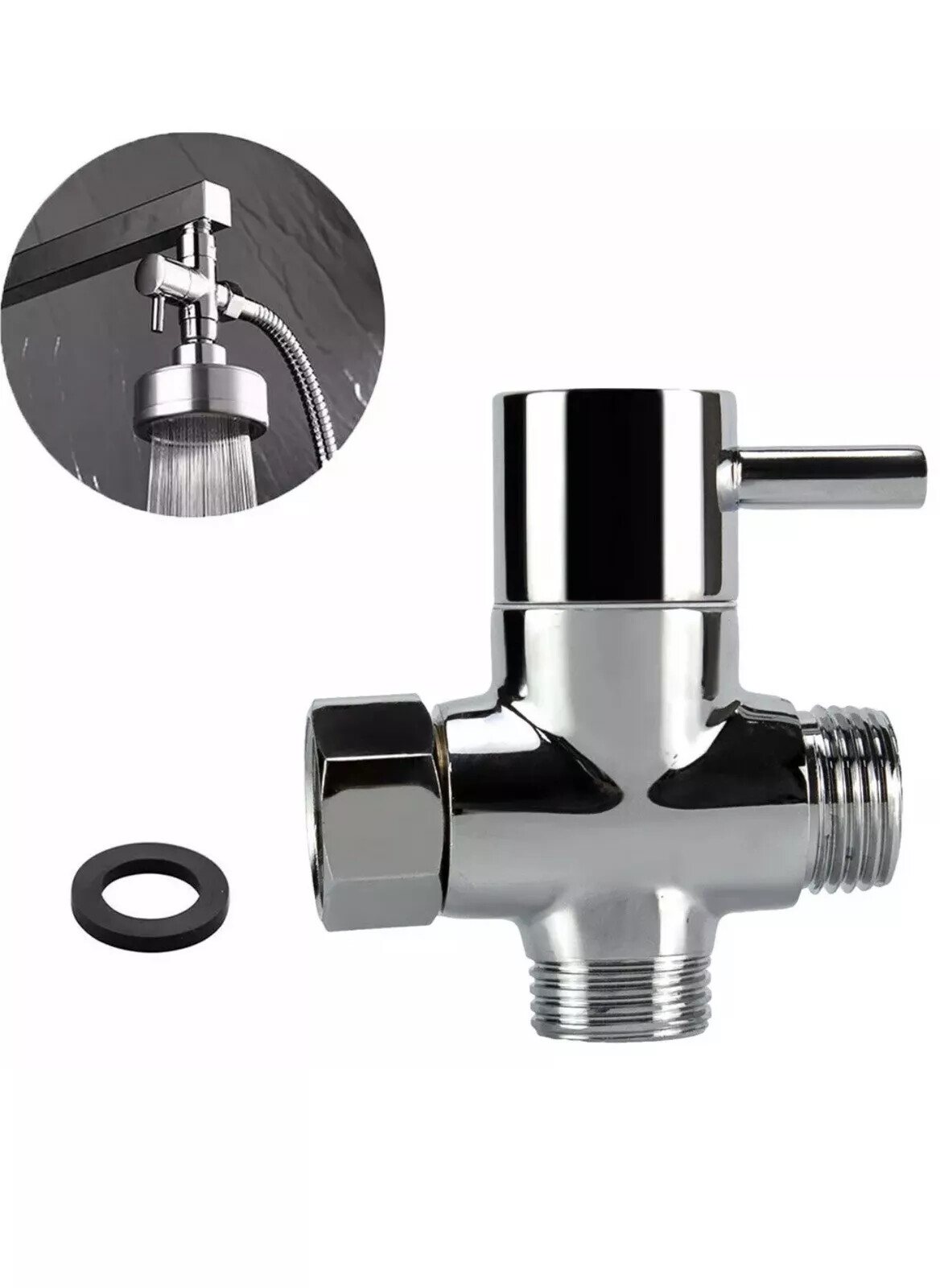 3 Way T-adapter Chrome for Shower Head Arm Mount Diverter Valve Splitter G1/2