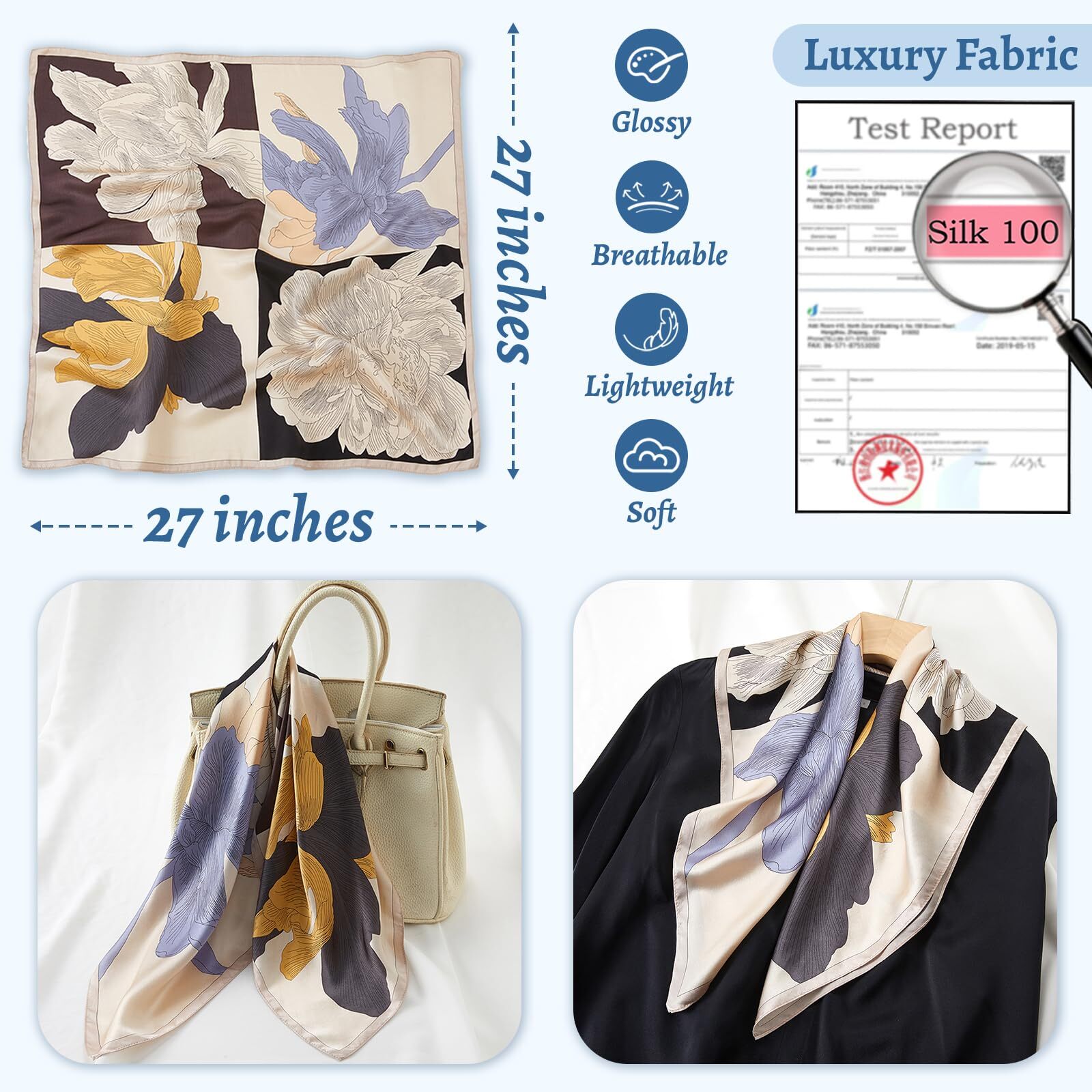 27x27 inch 100 Mulberry Silk Square Scarf Neck Scarf Hair Scarf Headscarf
