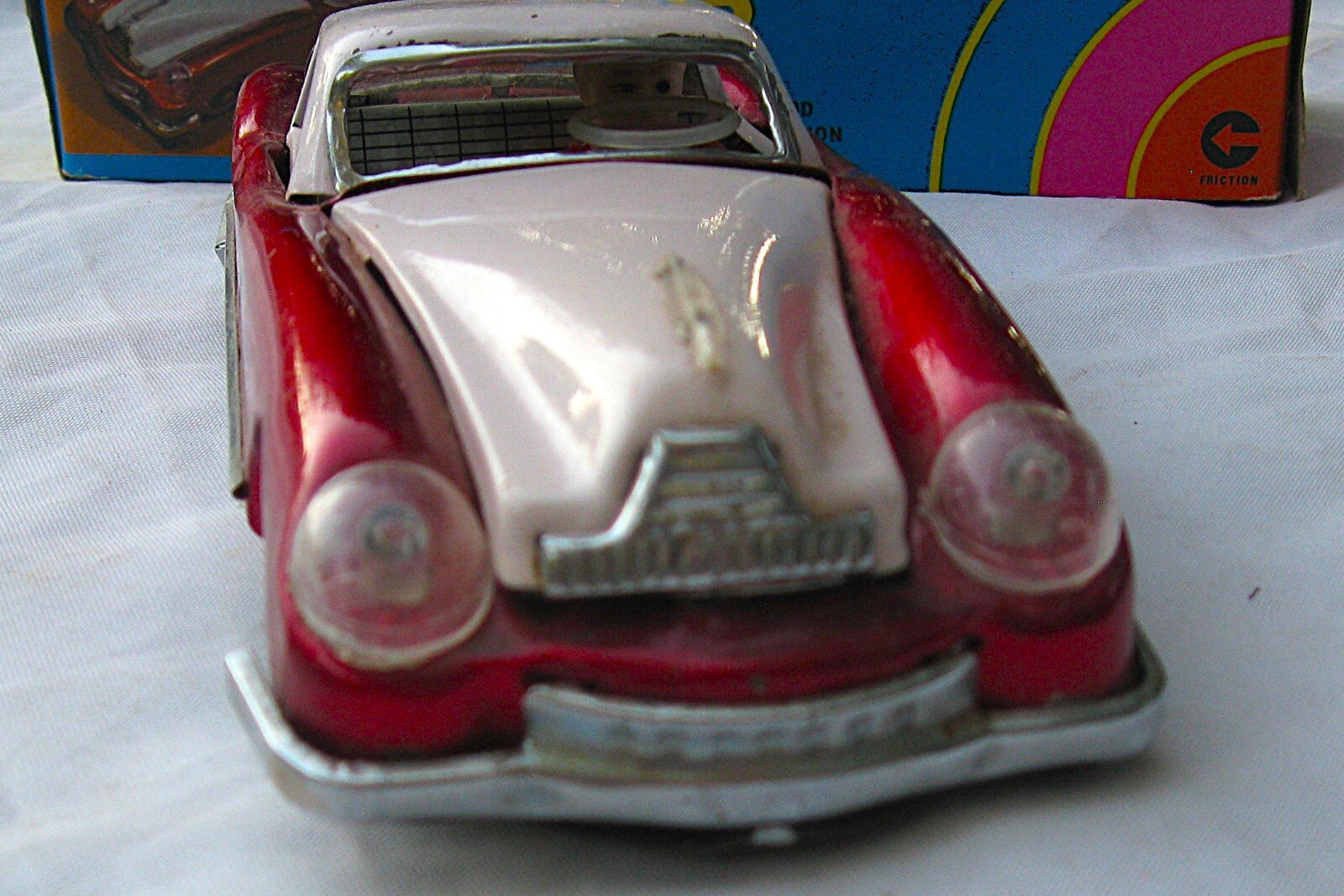 Vintage Tin Litho Lucky Sports Car Friction Engine Sound In Original Box