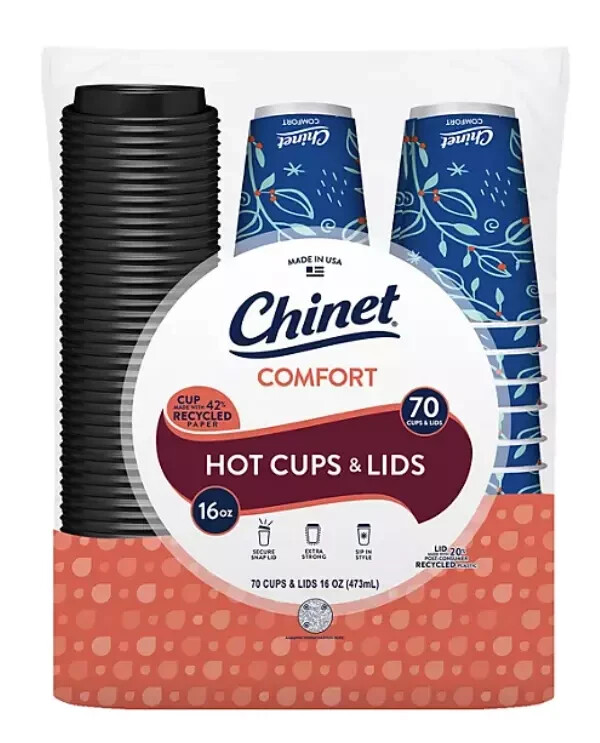 Chinet Comfort Cup and Lids, 16oz. 70 ct Free Shipping