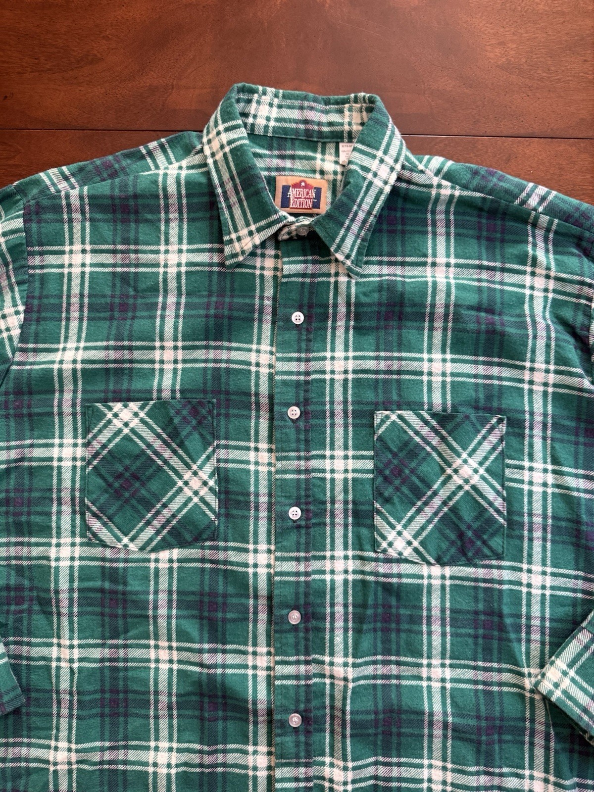 как выглядит Vintage American Edition Mens Flannel Long Sleeve Button Up Shirt Size XLT Green фото