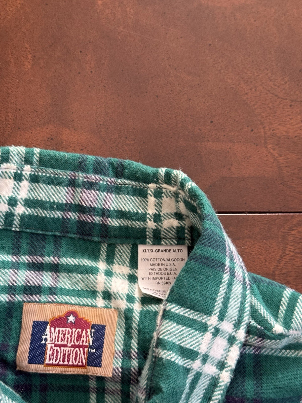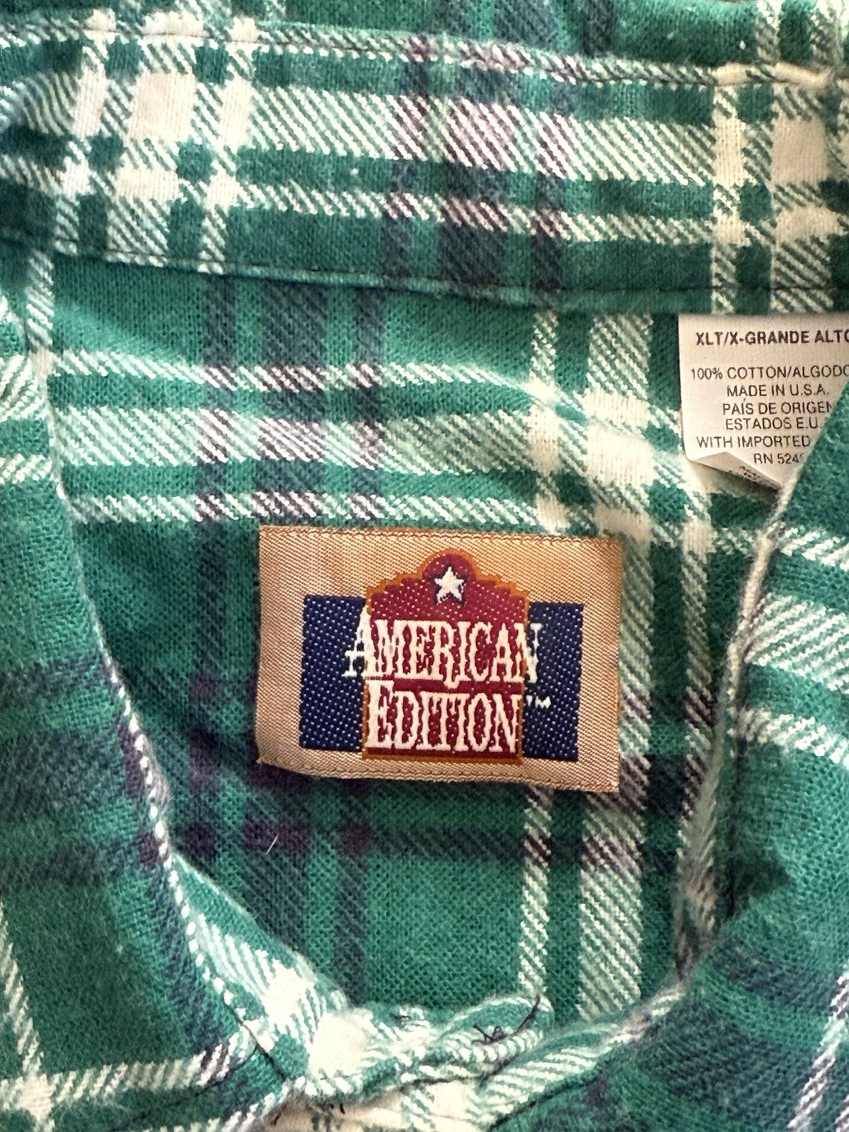 Vintage American Edition Mens Flannel Long Sleeve Button Up Shirt Size XLT Green