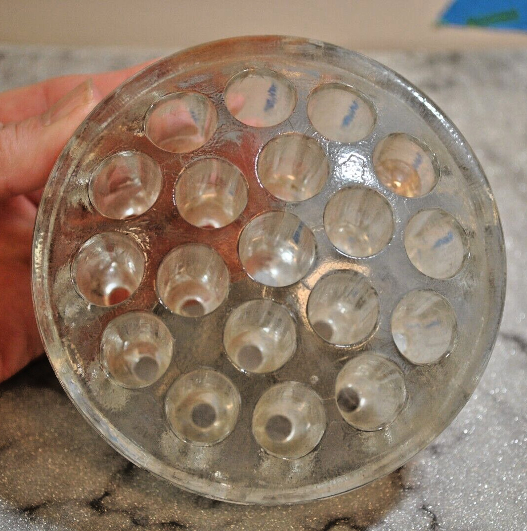 Vintage GLASS 19 NINETEEN HOLE ROUND FOOTED DOMED FLOWER FROG