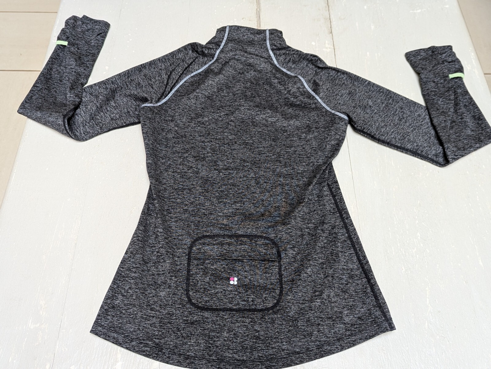 как выглядит Sweaty Betty Grey Marl Sweatshirt Hoodie Half-Zip Small UK 10 Mitten Back Pocket фото