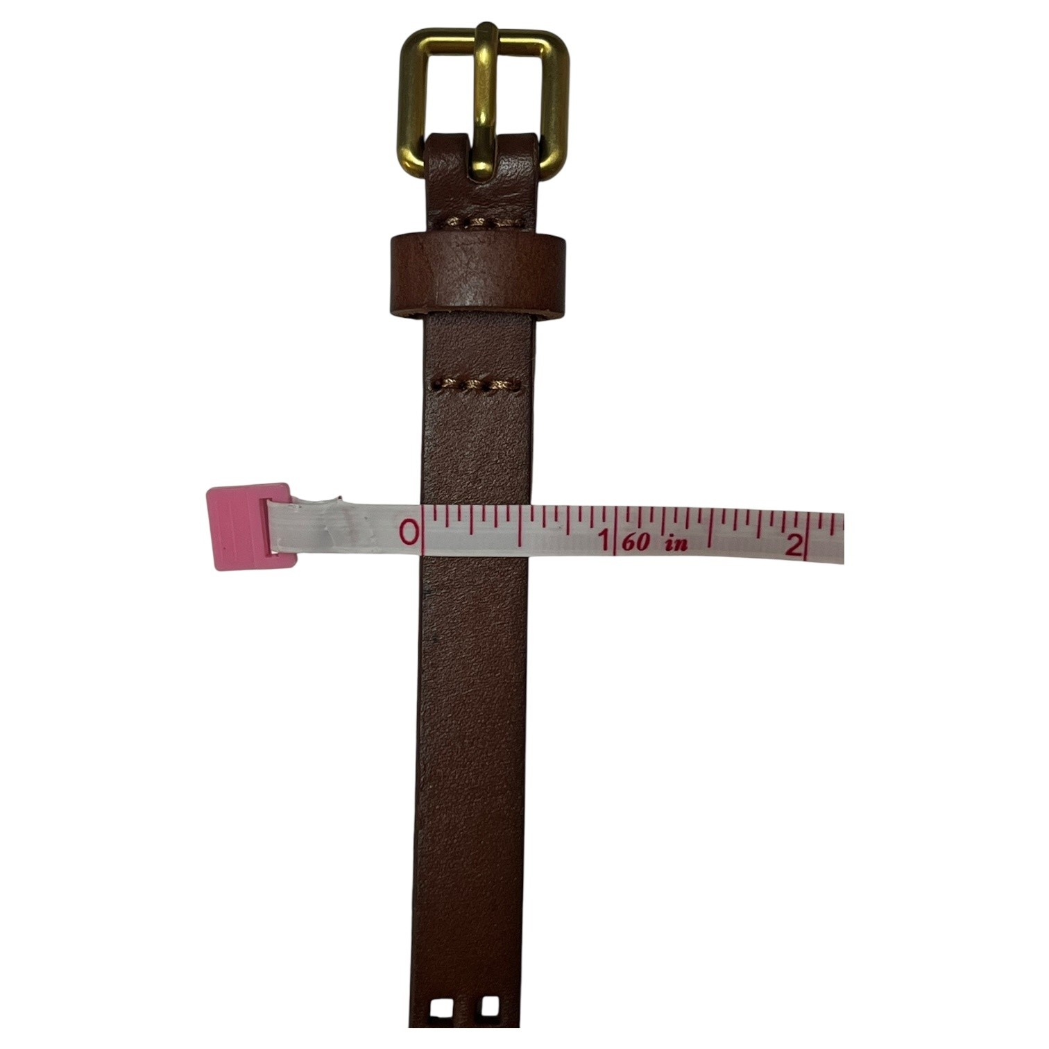 New Gap Belt Womens Medium Brown Cow Leather Skinny Perforated Brass Buckle
