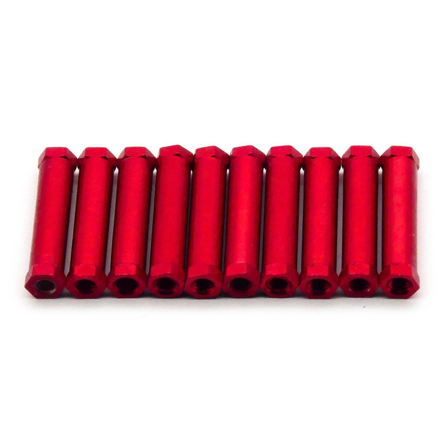 10pcs M3x25mm Hexagonal Base Aluminum Anodized Spacer Standoff Red