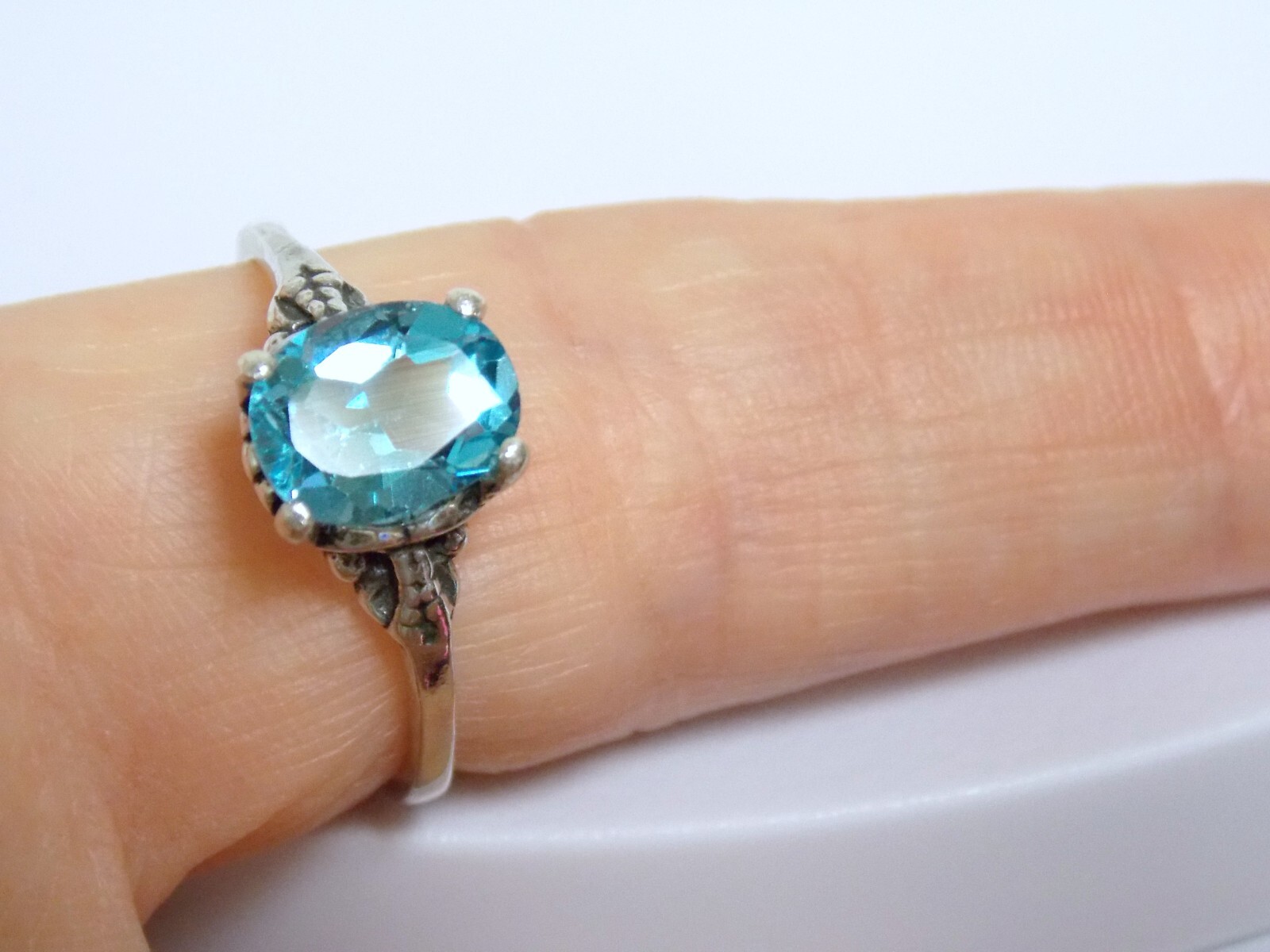 как выглядит Natural Blue Topaz Size 9 Ring 925 Sterling Silver Vintage Style 2.50ct USA Made фото