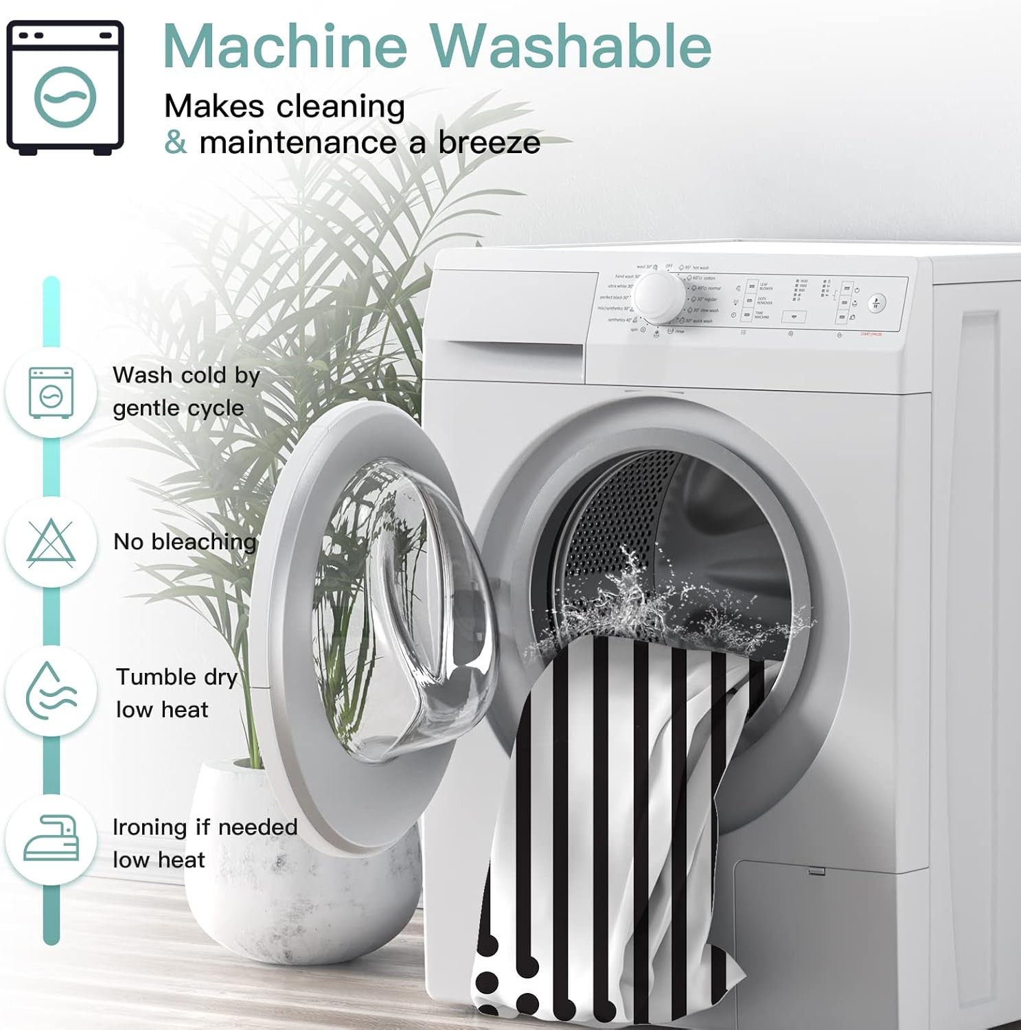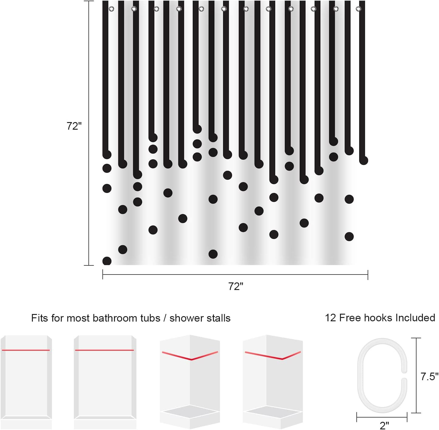YAXI Black and White Fabric Shower Curtain for Bathroom Modern Black Striped Sho