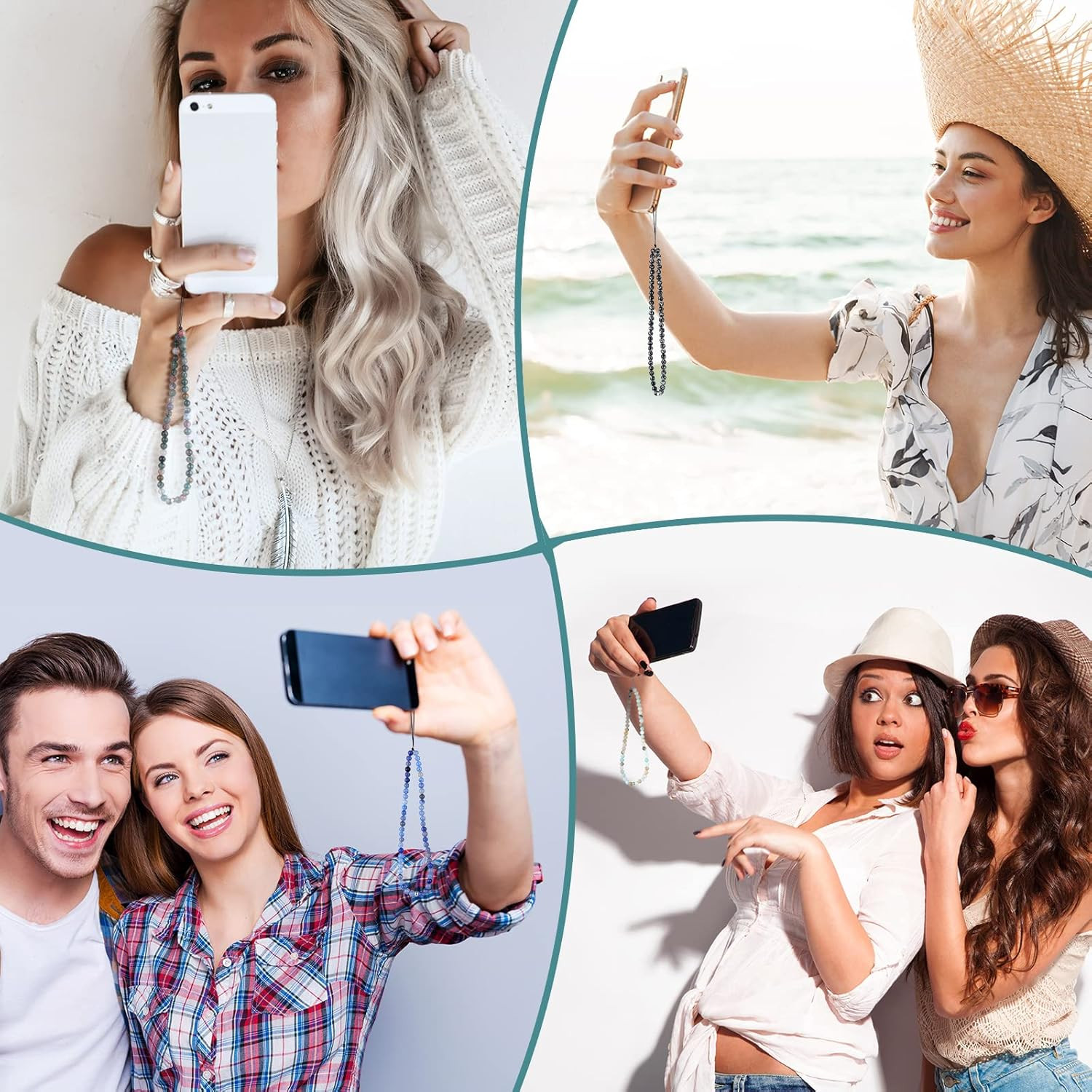 Flutesan 4Pcs Phone Charm Beaded Strap Natural Stone Charms Lanyard Keychain Bra