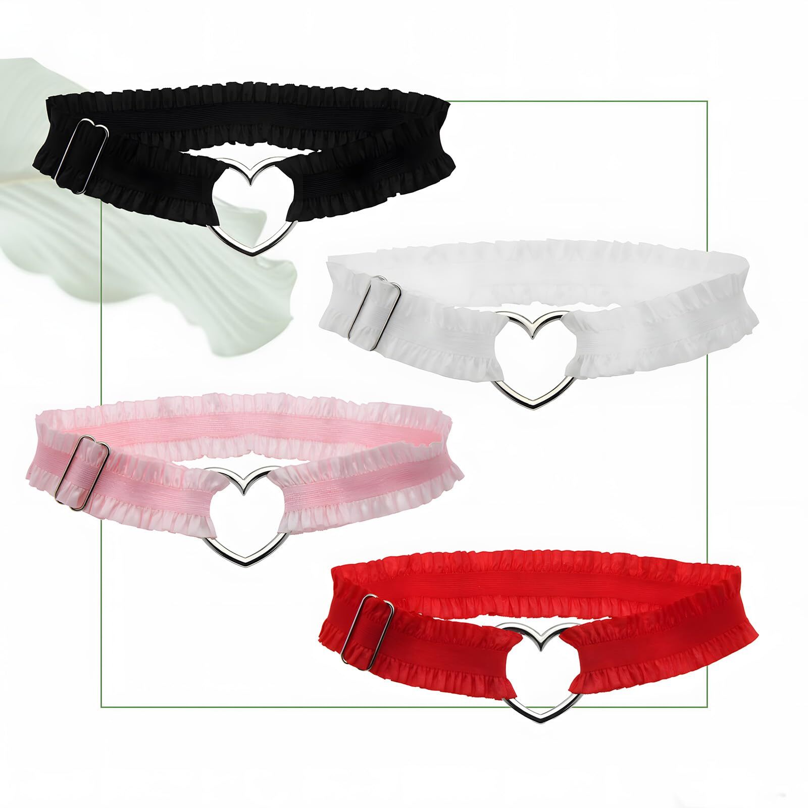 4 PCS Adjustable Heart Lace Thigh Garter for Women Wedding Bride Garter