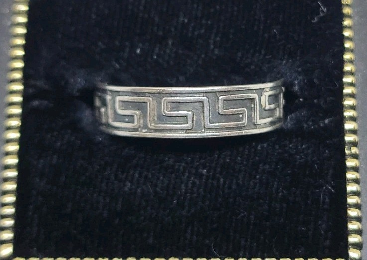 как выглядит Vintage Mexico Sterling Silver 925 Greek Key Band Ring Size 8 фото