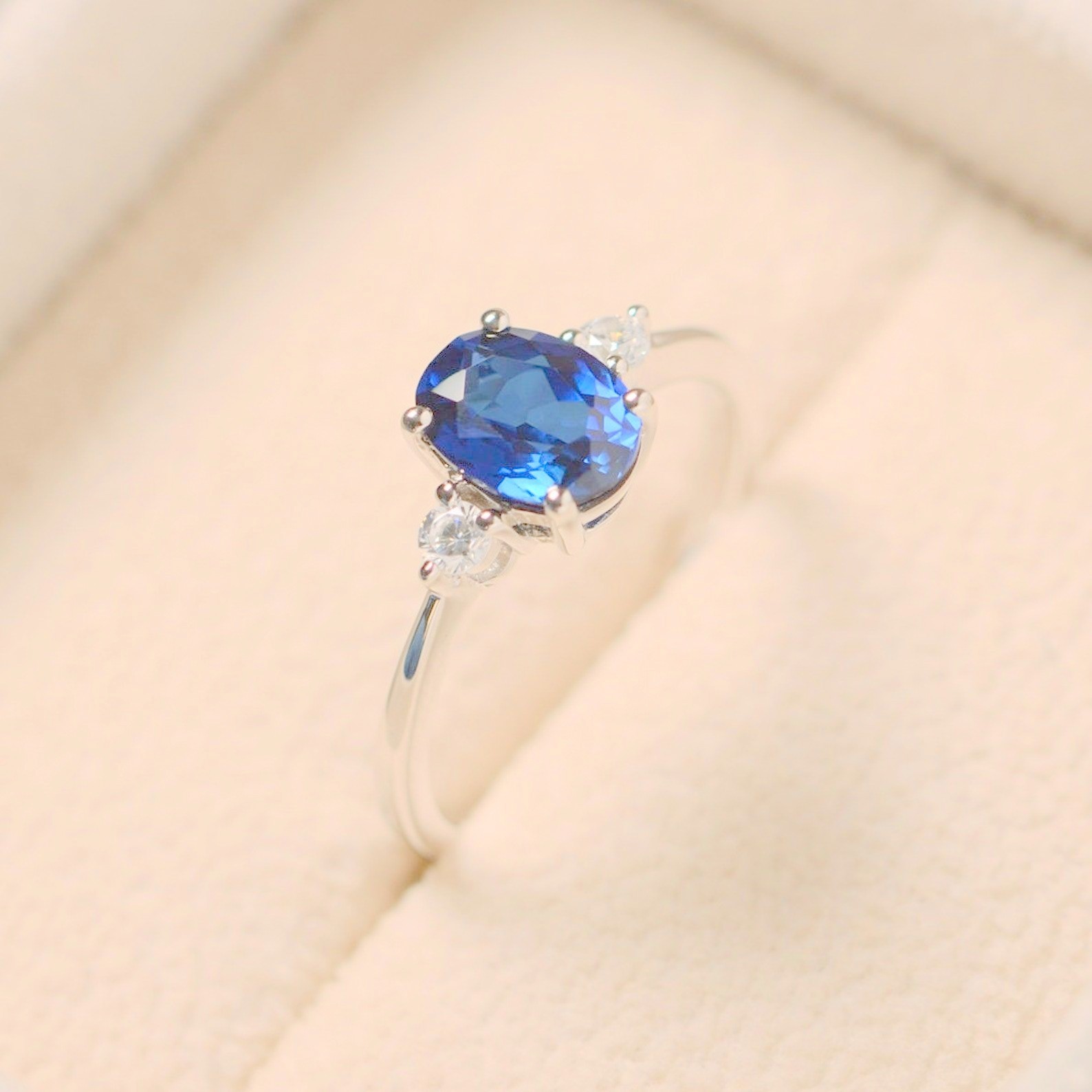Natural Blue Sapphire Wedding Ring 925 Sterling Silver Ring Oval Cut Gemstone