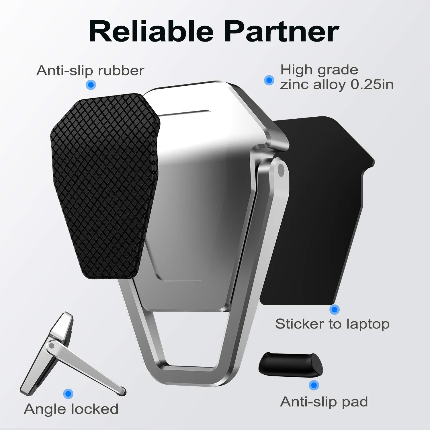 Portable Anti-Slip Keyboard Riser Zinc Alloy Laptop Stands Silver Color