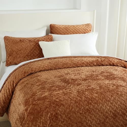 Velvet Bedspread Quilt Bedding Sets,Luxury Elegant Queen 90 by98inch Caramel