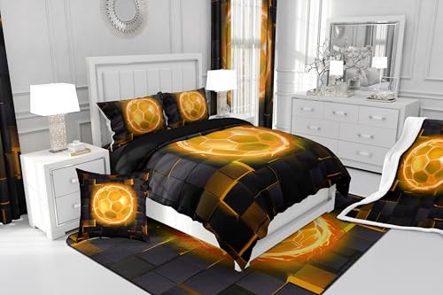 Orange Soccer Bed in a Bag Size 7 Pieces,Neon Light Full Black Orange