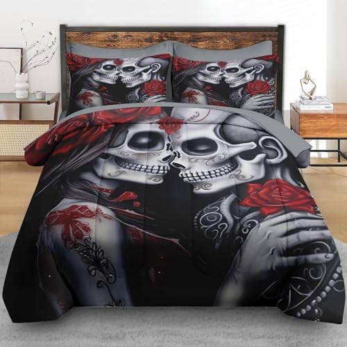 Comforter Set Full Size, Love 7 Pcs Bedding for Adults, Vintage Flower Rose