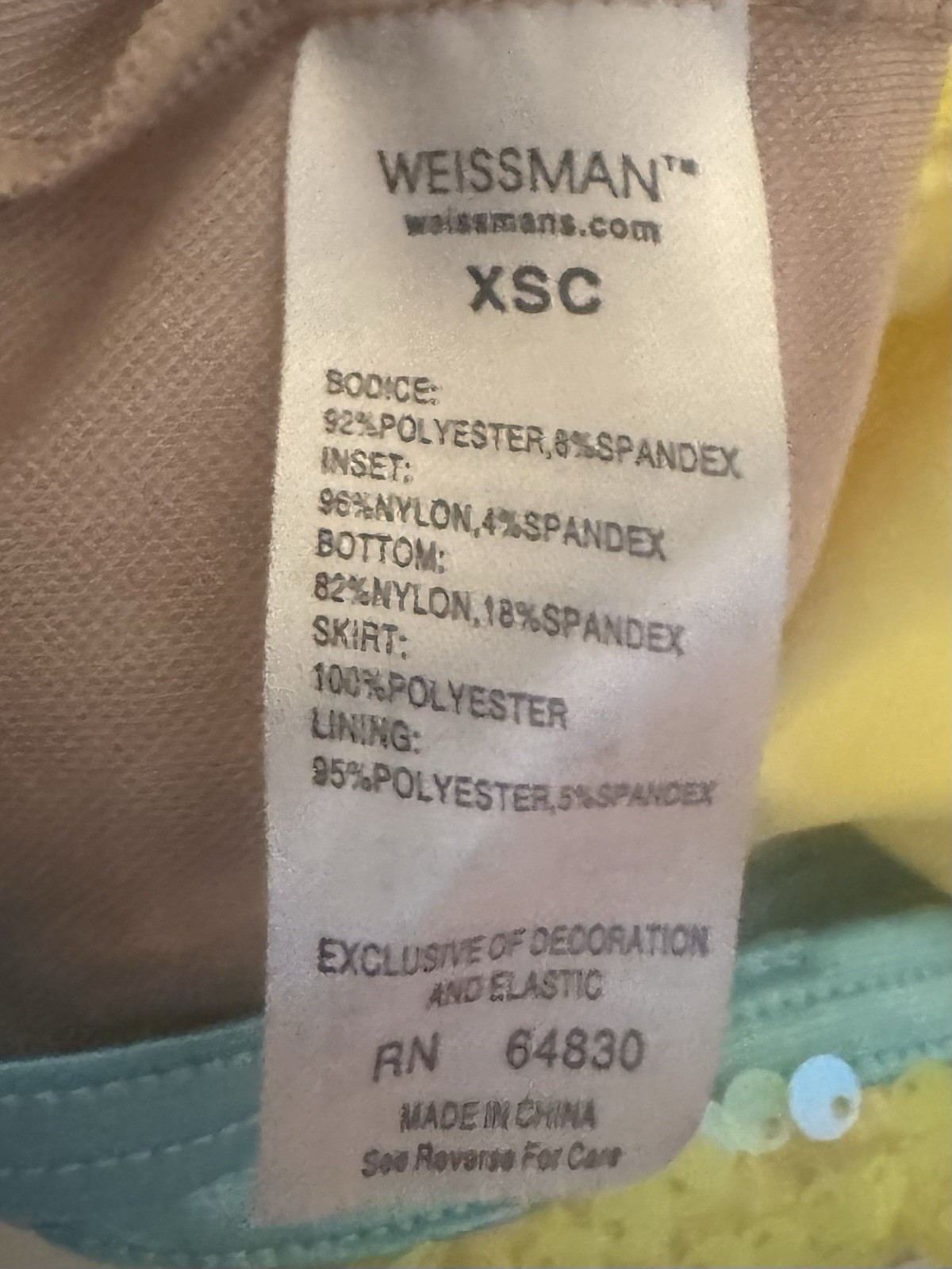 Weissman Yellow Teal Blue Tutu Dance Costume Child Size XS XSC