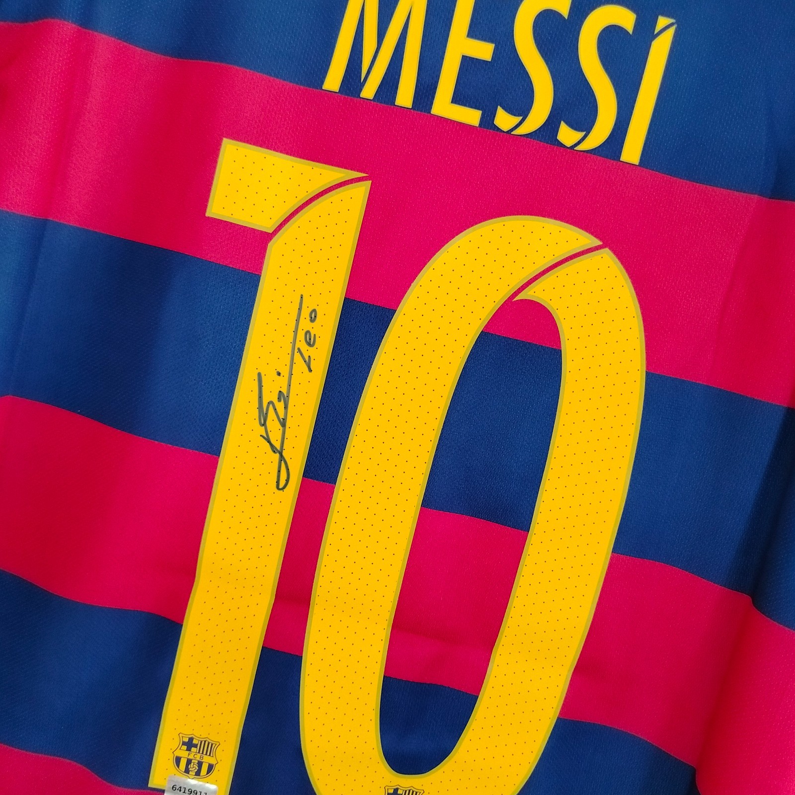 как выглядит Lionel Messi Hand-Signed 2015/16 FC Barcelona Home Jersey With COA Leo Auto фото