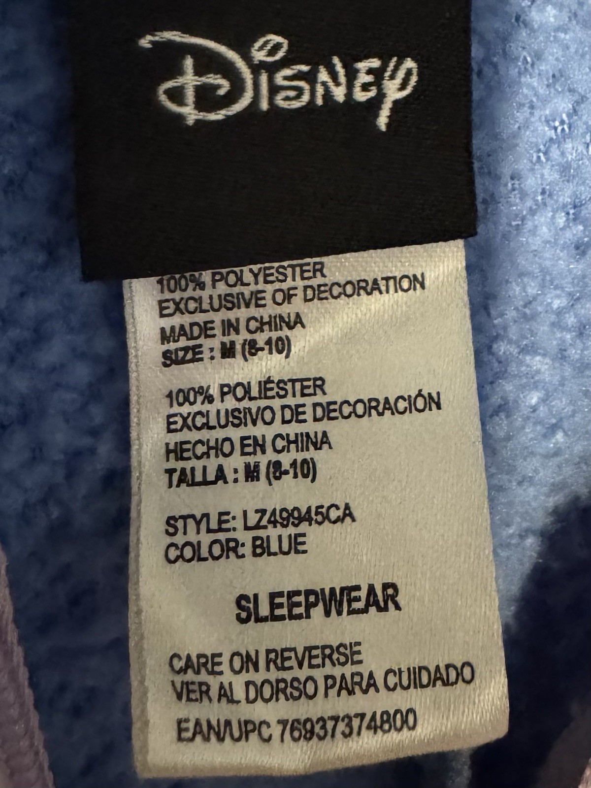 Disney Eeyore One Piece Pajama Sleepwear Costume Adult Medium 8-10 Winnie Pooh