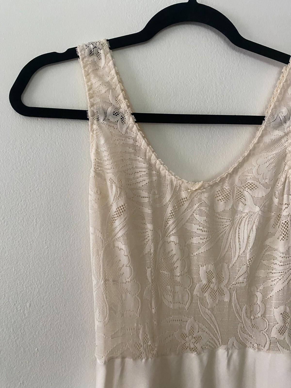как выглядит VTG 50s / 60s MCM Cream Crochet Lace Slip Bridal Coquette Romantic XS/S Boho фото