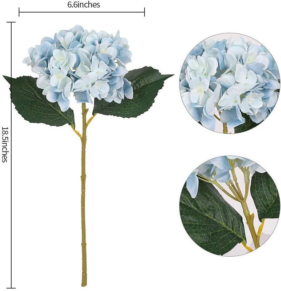 Blue Hydrangea Artificial Flowers 6pcs Faux Hydrangea Flowers, Fake Flowers