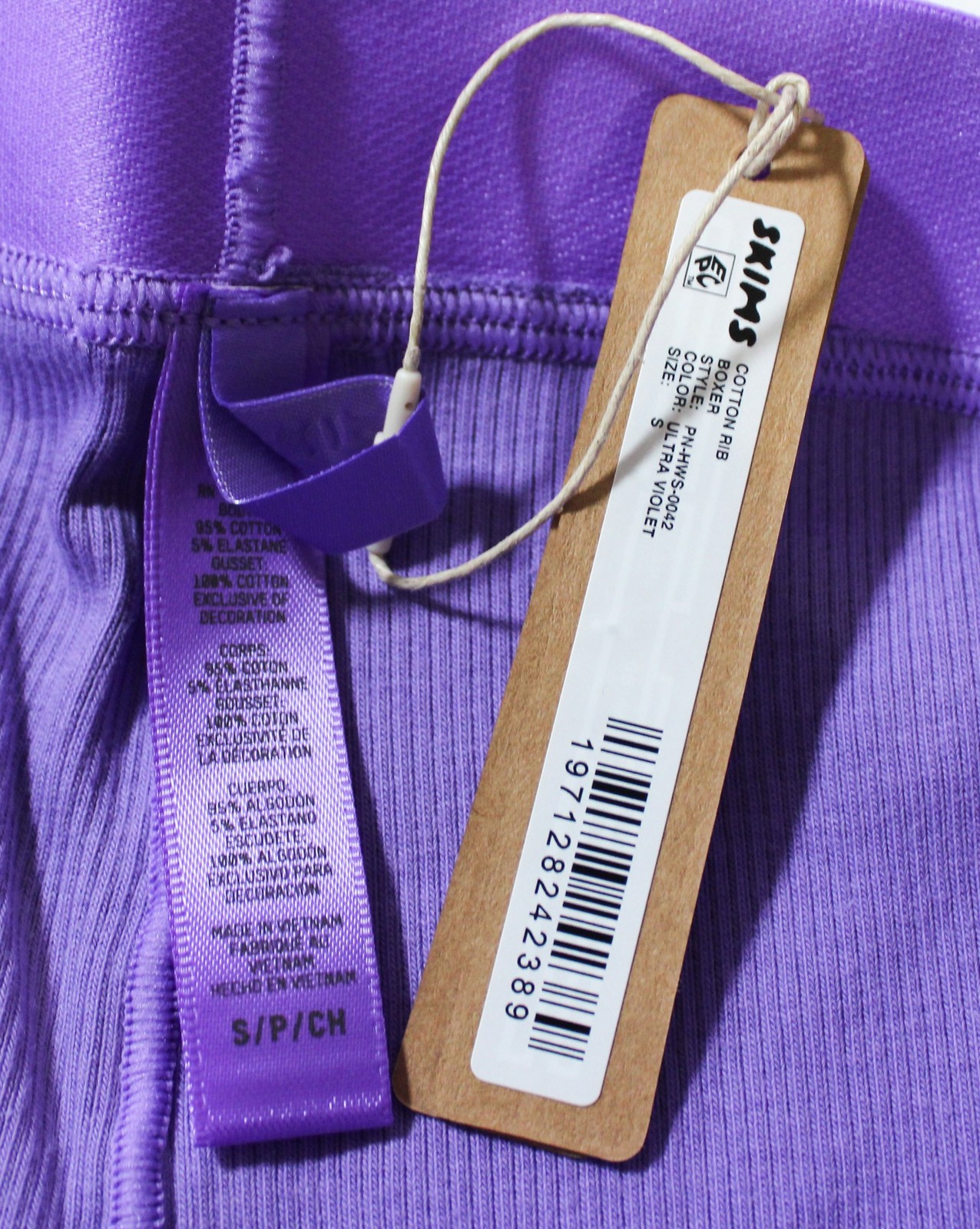 как выглядит Skims Womens High Waisted Cotton Rib Boxer Shorts ZG3 Ultra Violet Small NWT фото
