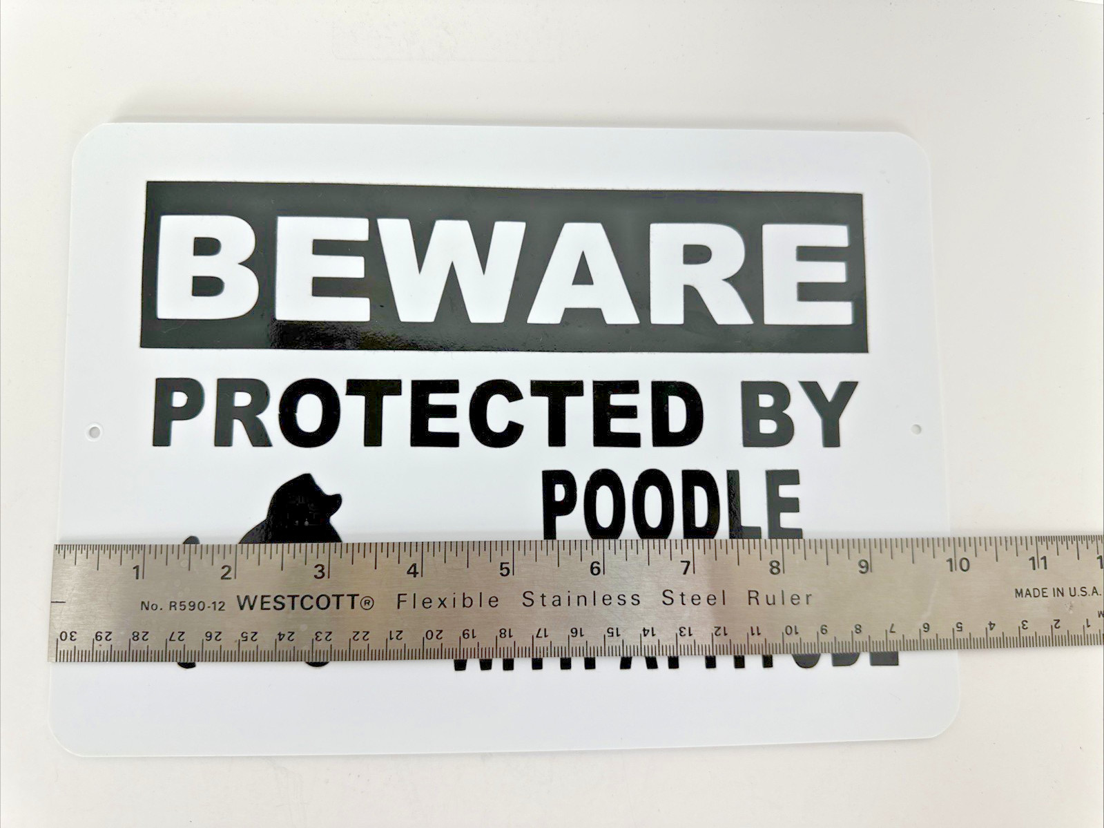 Beware Protected By Poodle With Attitude Plastic Sign 10 X 7