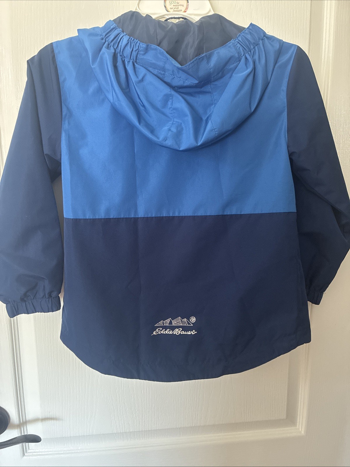 как выглядит EDDIE BAUER Boys Hooded Rain Jacket Kids XS 5/6 Medium Navy Blue фото