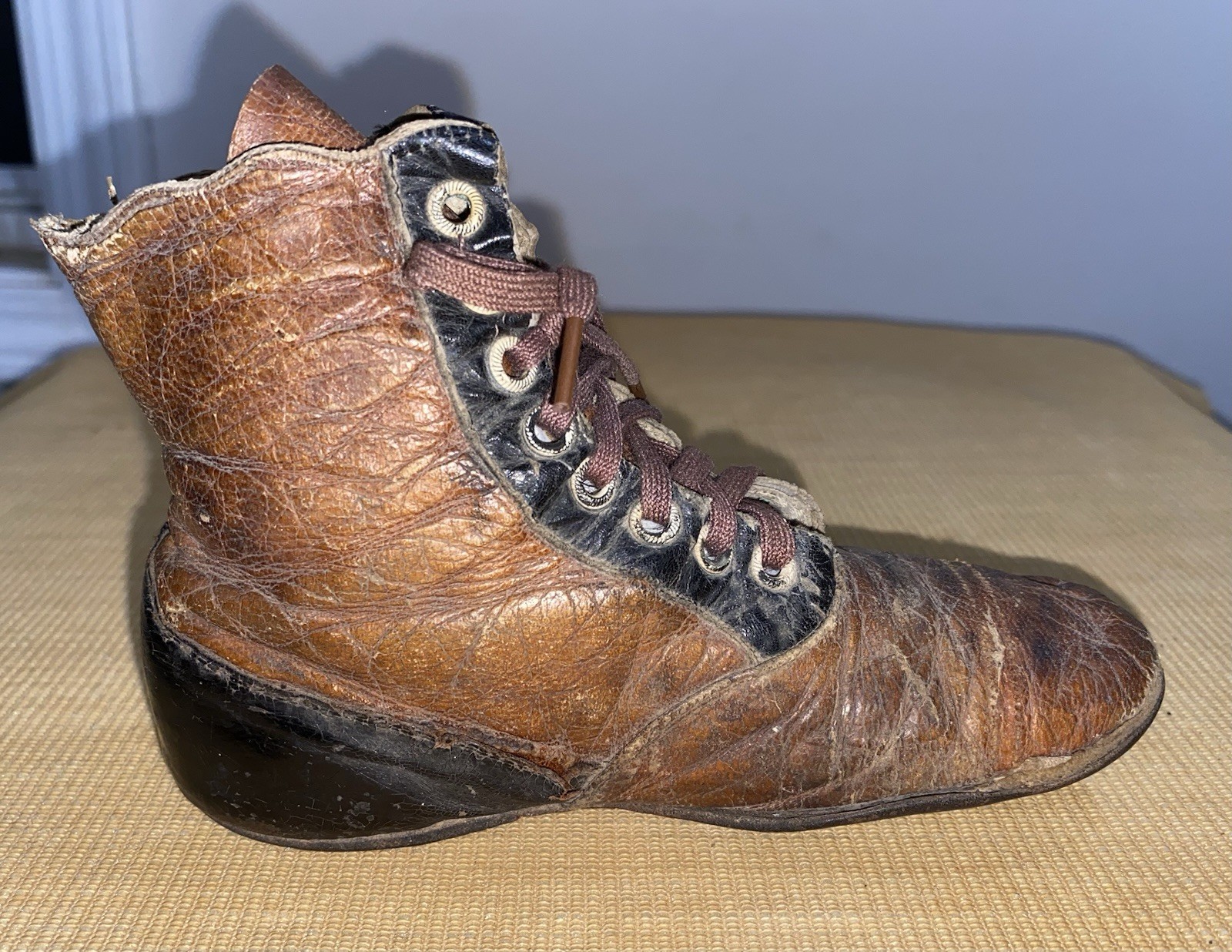 как выглядит Antique Victorian Child Leather Single Boot Bootie Shoe Primitive фото