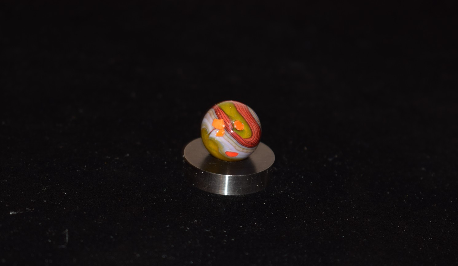 как выглядит JABO/DAS Wildfire Infused Glass OXBLOOD Toy Marble Size .703 45/64" 18mm Mint фото
