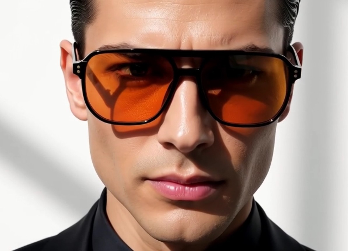 как выглядит Large Oversized Men Orange Lens Aviator Retro 80