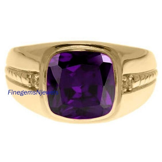 как выглядит Natural Amethyst CZ Gemstone with 925 Sterling Silver Gold Plated Ring 50 фото
