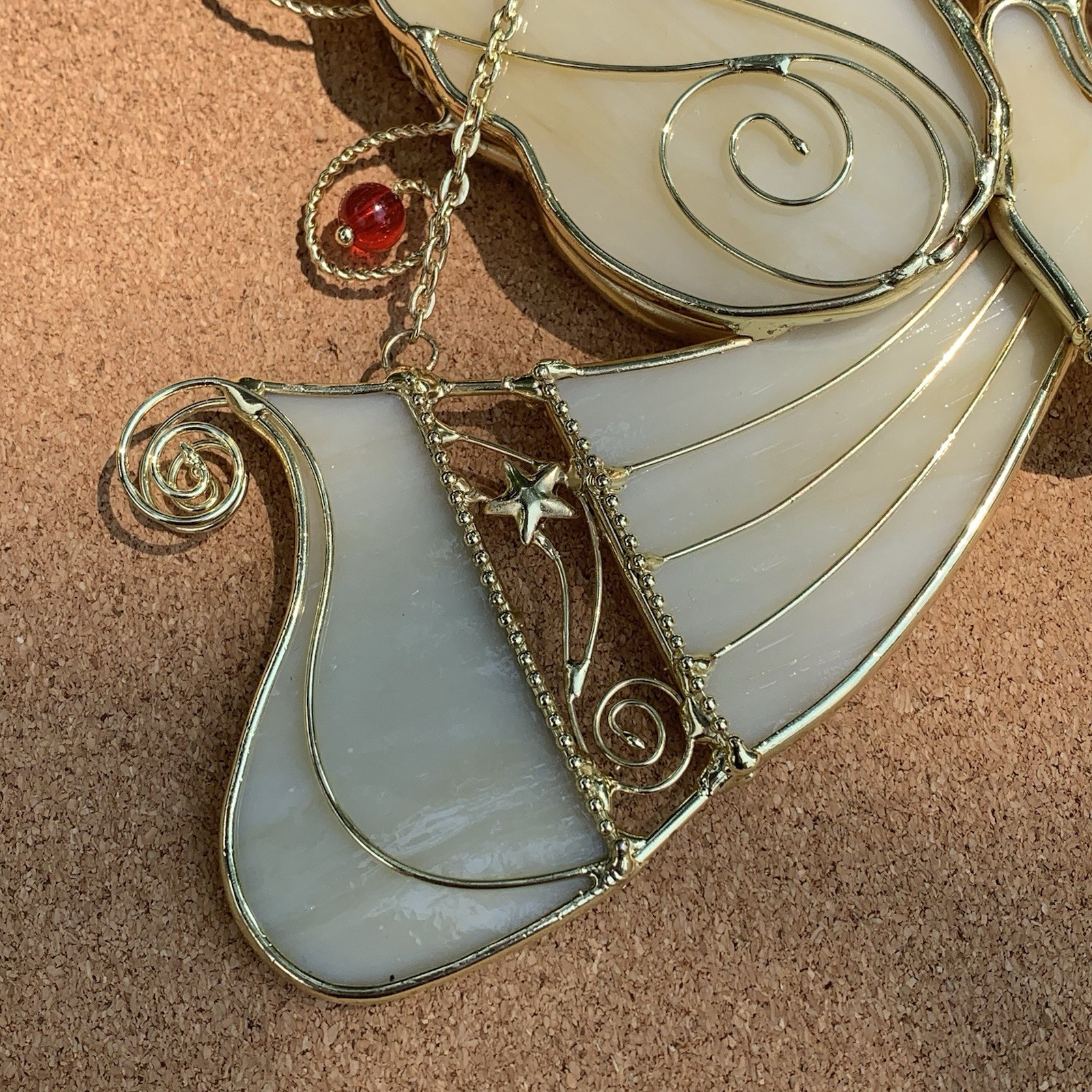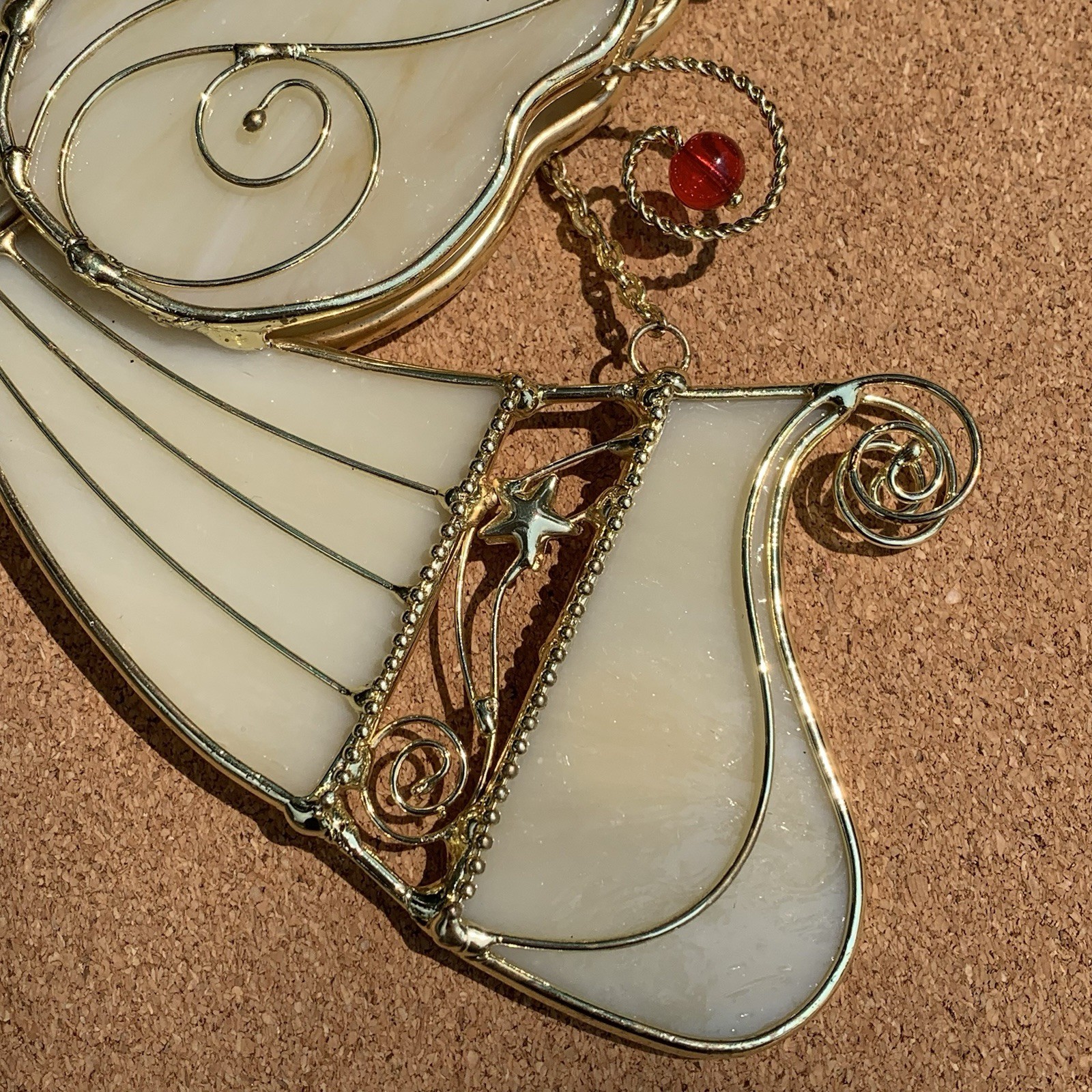 Stained Glass Angel holding Musical Instrument Sun Catcher 7 Tall