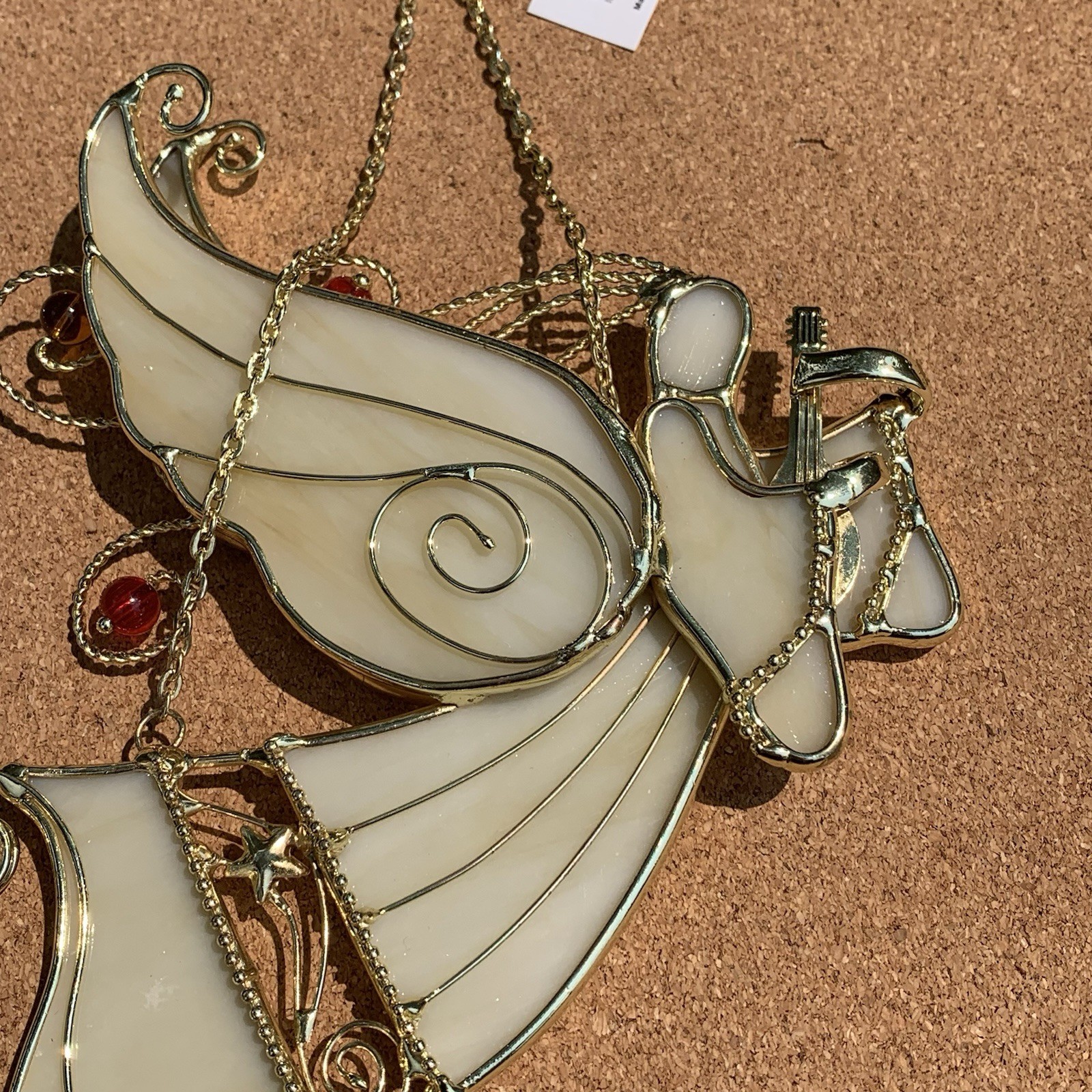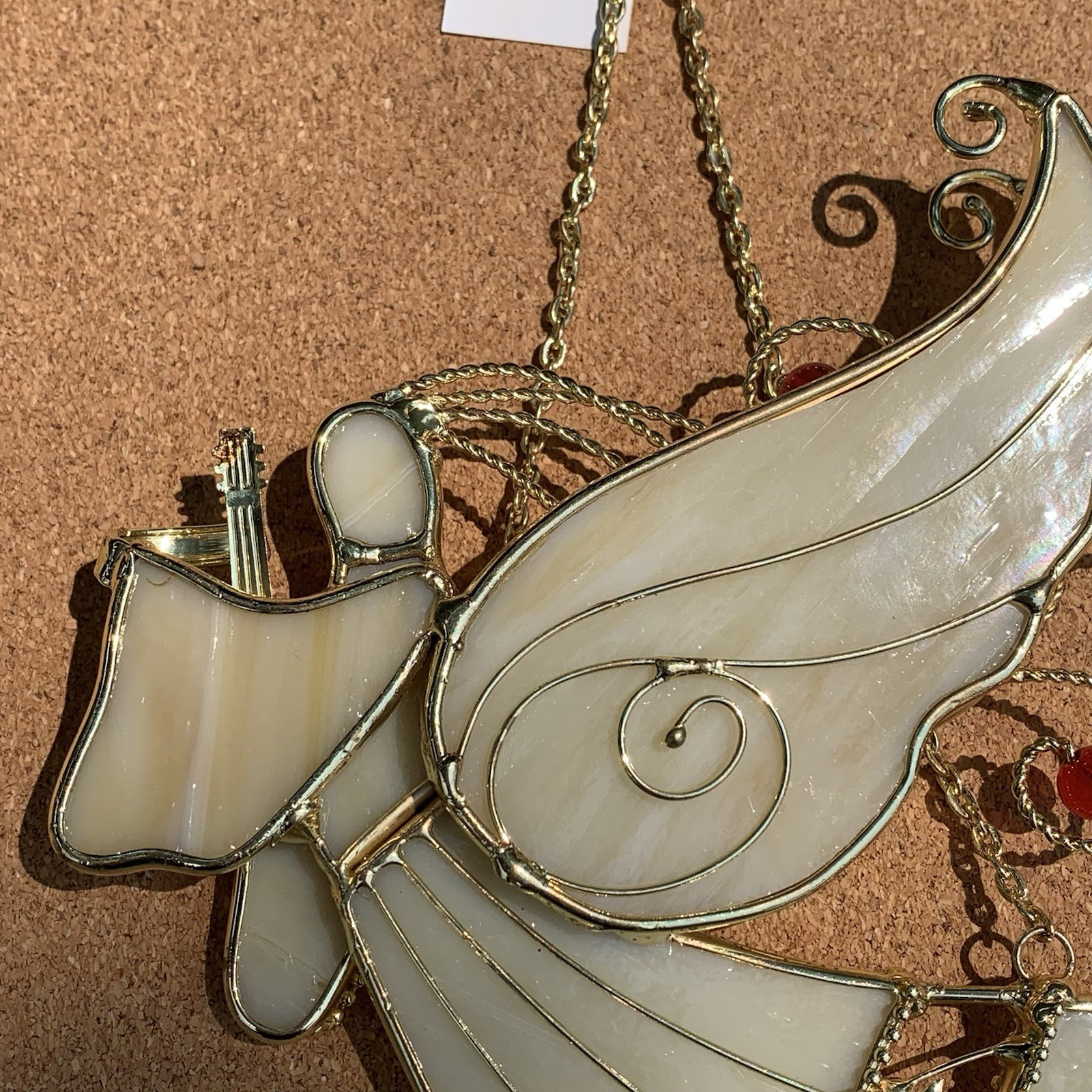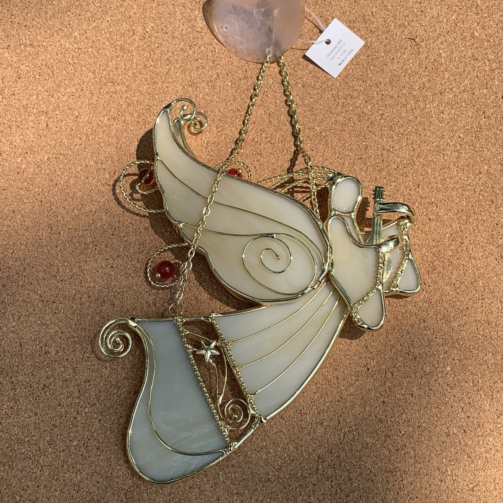 • Stained Glass Angel holding Musical Instrument Sun Catcher 7 Tall