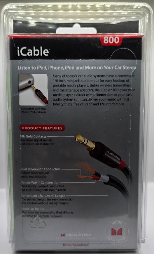 Monster iCable 800 Auxiliary Input Cable For Car iPod, iPhone, Samsung - 3 Ft