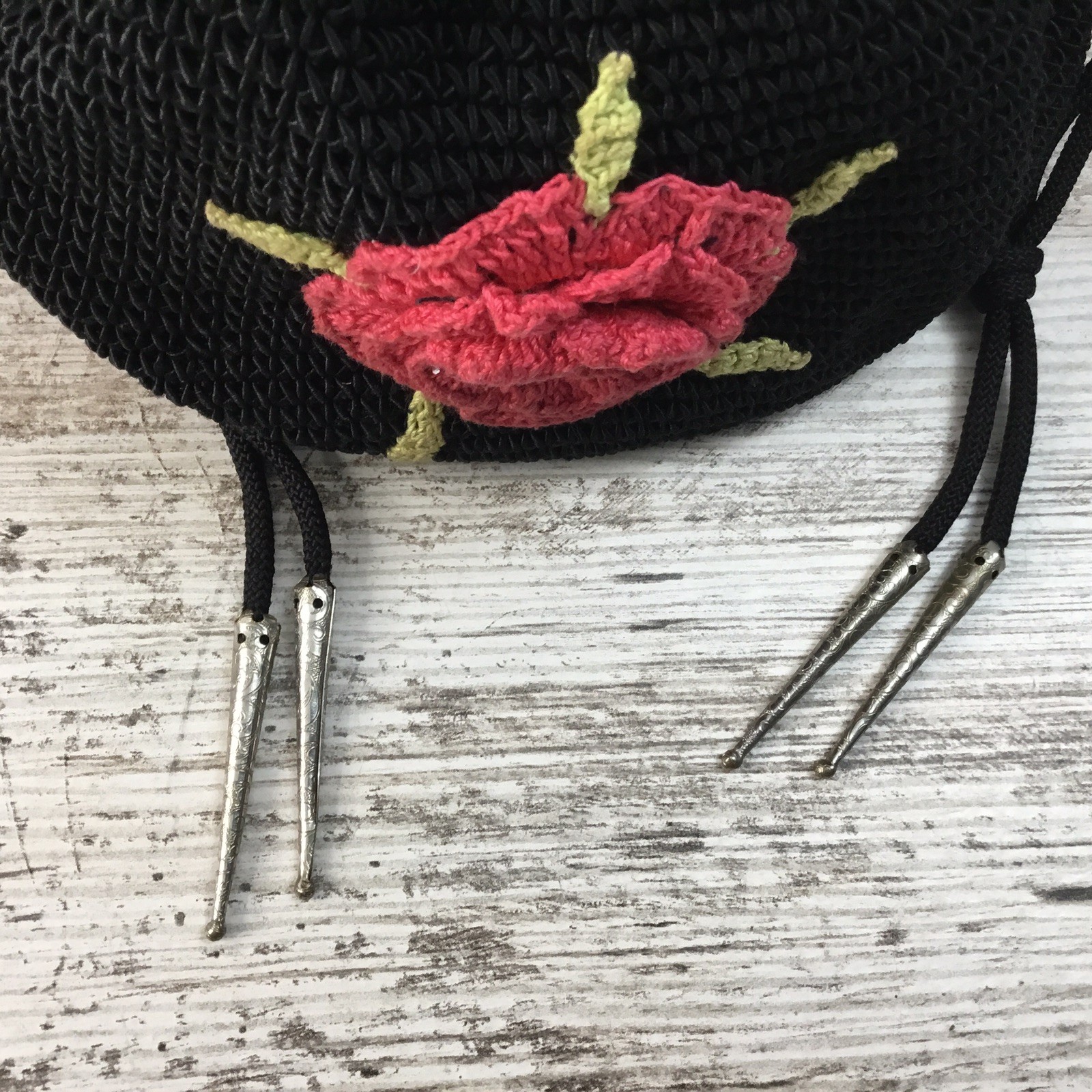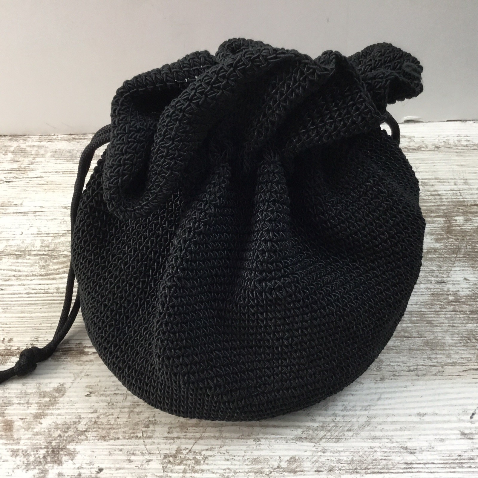как выглядит Drawstring Evening Bag Purse Black Crochet Floral фото
