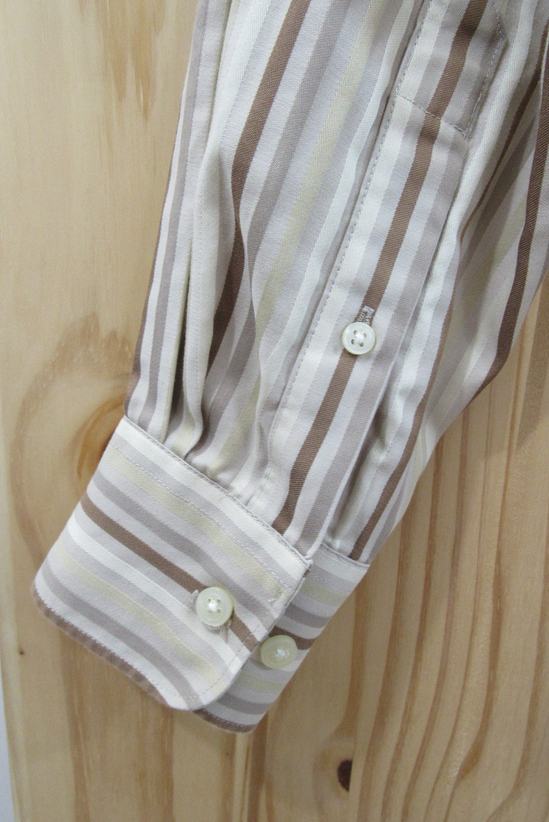 как выглядит Claiborne Shirt Mens Medium Brown Stripe Wrinkle Free Button Up Dress Cotton фото