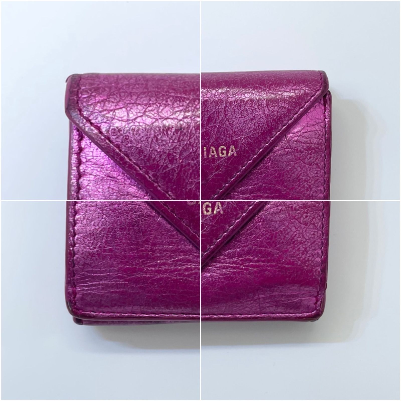 как выглядит BALENCIAGA Paper Mini Wallet Pink Metallic Leather Compact Tri-fold Women Auth фото